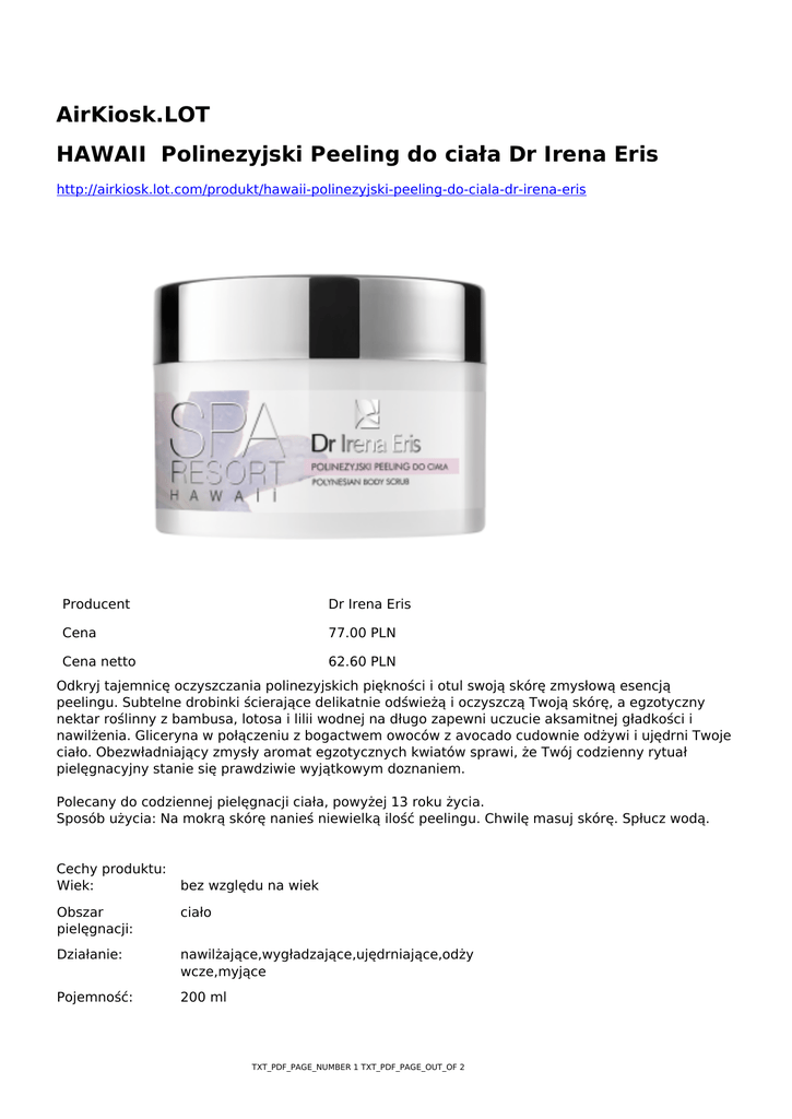 AirKiosk.LOT HAWAII Polinezyjski Peeling do ciała Dr Irena Eris