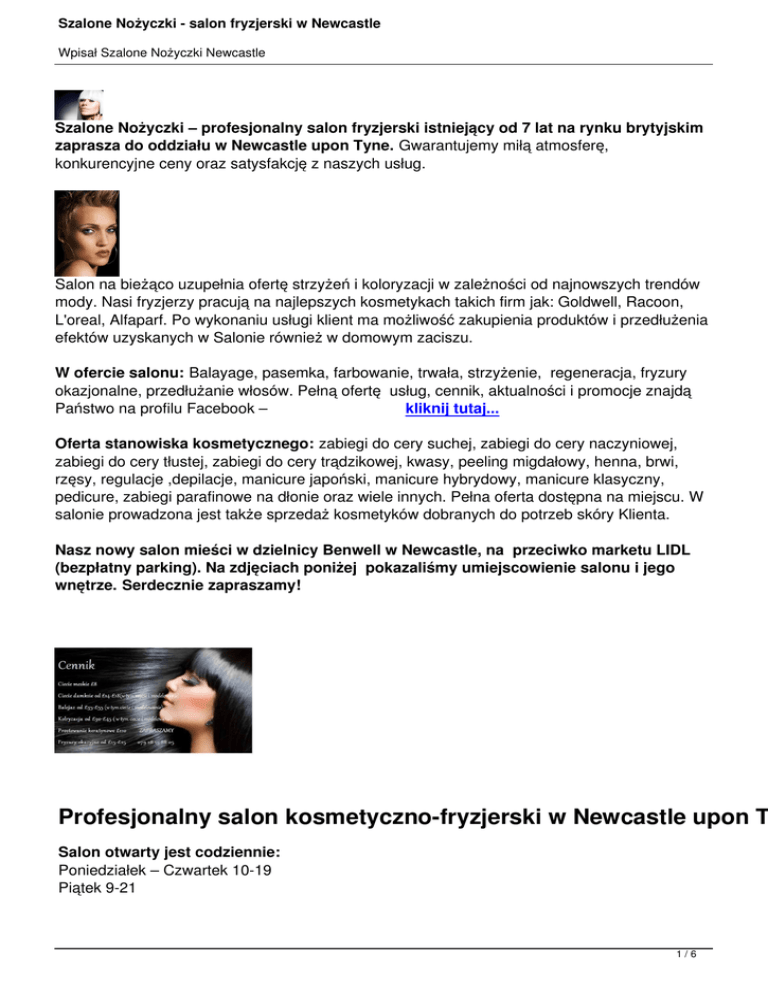 Szalone Nożyczki - salon fryzjerski w Newcastle