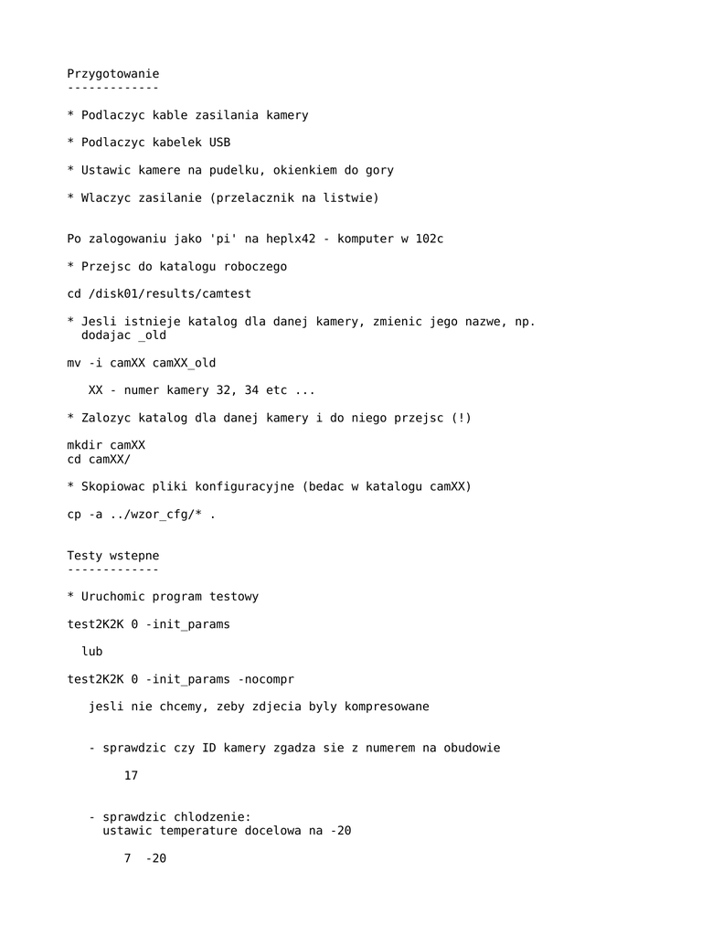 Przygotowanie ------------- * Podlaczyc kable zasilania kamery