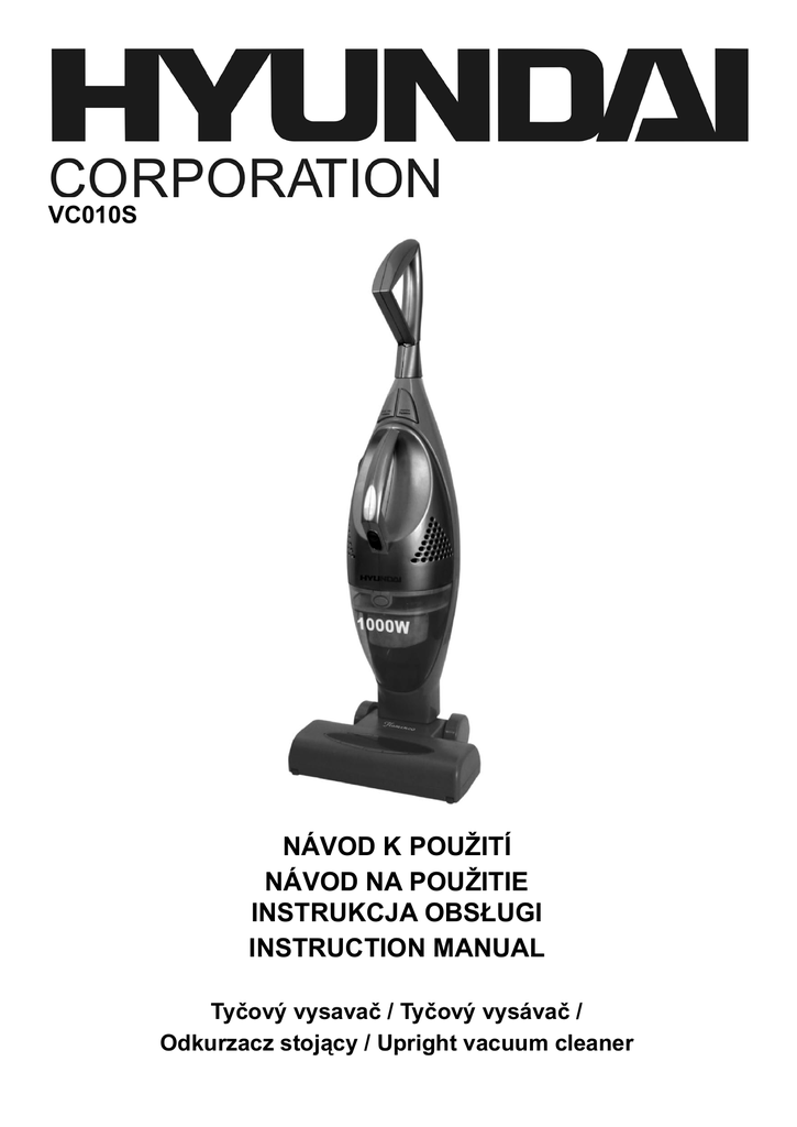 VC010S NÁVOD K POUŽITÍ NÁVOD NA POUŽITIE INSTRUKCJA OBSŁUGI INSTRUCTION MANUAL Tyčový vysavač / Tyčový vysávač / Odkurzacz stojący / Upright vacuum cleaner Vážený zákazníku, děkujeme Vám za zakoupení našeho produktu. Před uvedením tohoto přístroje do provozu si velmi pozorně přečtěte návod k obsluze a tento návod spolu se záručním listem, pokladním dokladem a podle možností i s obalem a vnitřním vybavením obalu dobře uschovejte. Všeobecné bezpečnostní pokyny • Používejte tento přístroj výlučně pro soukromou potřebu a pro stanovené účely. Tento přístroj není určen pro komerční použití. • Nepoužívejte jej v otevřeném prostoru (s výjimkou přístrojů, které jsou podmíněné používání venku určeny). Chraňte jej před horkem, přímým slunečním zářením, vlhkostí (v žádném případě jej neponořujte do kapalin) a stykem s ostrými hranami. Nepoužívejte přístroj v případě, že máte vlhké ruce. Jestliže dojde k navlhčení nebo namočení přístroje, okamžitě vytáhněte zástrčku ze zásuvky. Vyvarujte se styku s vodou. • Přístroj vypněte a vždy vytáhněte zástrčku ze zásuvky (tahejte jen za zástrčku, nikdy ne za kabel), jestliže nebudete přístroj používat, chcete-li namontovat příslušenství, přístroj vyčistit nebo v případě poruchy. • Přístroj nesmí zůstat v provozu bez dozoru. Jestliže musíte pracoviště opustit, vždy přístroj vypněte, resp. vytáhněte zástrčku ze zásuvky (vždy tahejte za zástrčku, nikdy ne za kabel). • Abyste ochránili děti před riziky spojenými s elektrickými přístroji, postarejte se o to, aby kabel nevisel dolů a děti na přístroj nedosáhly. • Pravidelně kontrolujte přístroj a přívodní kabel z hlediska poškození. Jestliže přístroj vykazuje nějakou závadu, neuvádějte jej do provozu. • Neopravujte přístroj vlastními silami, nýbrž vyhledejte autorizovaného opraváře. Abyste eliminovali rizika, nechejte poškozený přívodní kabel nahradit kabelem se stejnými hodnotami a to jen výrobcem, naším servisem pro zákazníky nebo jinou kvalifikovanou osobou. • Používejte jen originální příslušenství. • Respektujte, prosím, následující „Speciální bezpečnostní pokyny pro tento přístroj“. Speciální bezpečnostní pokyny pro tento přístroj • Ke snížení ohrožení elektrickým proudem vysavač nepoužívejte venku nebo na mokrých plochách. • Při provádění údržby a čištění kartáče na podlahu vysavač vytáhněte ze zásuvky. Nedodržení tohoto pokynu může vést k zasažení elektrickým proudem nebo k nepředpokládané rotaci kartáče. • Tento vysavač je konstruován pouze pro střídavý proud o napětí 230 V. Připojení k jiným zdrojům energie jej může poškodit. • Při navíjení kabelu vysavač pevně držte, aby nespadl na zem a nepoškodil se. • Nikdy vysavač nepoužívejte s poškozeným kabelem nebo zásuvkou, je-li jeho funkce vadná, jeli poškozený nebo jestliže upadl do vody. Předejte jej opravně. • Nepřejíždějte vysavačem přes kabel. Neukládejte vysavač v blízkosti míst s vysokou teplotou. • Neponechávejte vysavač zapojený do zásuvky bez dozoru. Pokud vysavač nepoužíváte nebo provádíte údržbu, vždy jej vypněte a vytáhněte ze zásuvky. • Vysavač není hračka. Nenechávejte děti, aby s ním manipulovaly nebo aby jej používaly jako hračku. Buďte opatrní při jeho použití dětmi nebo v jejich blízkosti. • Nemanipulujte s vysavačem a nevytahujte jej ze zásuvky, máte-li mokré ruce. • Nevkládejte do otvorů žádné předměty. • Nepoužívejte vysavač, jsou-li otvory ucpané. Udržujte otvory volné, bez prachu, vlasů, vláknitého prachu a jakýchkoliv předmětů, které by mohly omezovat proudění vzduchu. • Nepřibližujte vlasy, volné součásti oděvu a části těla k otvorům a pohyblivým součástem. • Nepoužívejte vysavač, není-li na svém místě instalován filtr. CZ - CZ • Po vysávání podlahy nebo jemného prachu omyjte filtr vodou (vyperte). Malé částice prachu mohou ucpat filtr a tím snížit průtok vzduchu a sací výkon. Nedodržení tohoto pokynu může mít za následek trvalé poškození vysavače. • Nepoužívejte vysavač ke sbírání tvrdých nebo ostrých předmětů, jako jsou malé hračky, špendlíky, hřebíky nebo mince, mohlo by to způsobit poškození vysavače nebo filtru. • Bepoužívejte vysavač za přítomnosti výbušných kapalin nebo par. • Nevysávejte žádné hořlavé předměty, jako jsou cigarety, zápalky, horký popel. • Při vysávání schodů buďte zvlášť opatrní. Pokládejte vysavač na podlahu, ne na židli nebo na stůl. Popis ovládacích prvků 1. Výsuvná rukojeť 2. Čelní kryt 3. Tlačítko k uvolnění ručního vysavače 4. Tlačítko výsuvné rukojeťi 5. Kolečka 6. Kryt rotačního kartáče 7. Ruční vysavač 8. Tělo vysavače 1. Kryt motoru 2. Nádobka na prach 3. Filtr 4. Hlavní spínač 5. Tlačítko prachového krytu Příslušenství: Štěrbinová sací hubice Pokyny k použití 1. Zkontrolujte, zda je prachový filtr na svém místě. 2. Jak se připevní nebo uvolní ruční vysavač k tělu vysavače? Stiskněte tlačítko k uvolnění ručního vysavače a vytáhněte ruční vysavač. Při jeho sestavování umístěte vhodně sací otvor, pak rukojeť zatlačte. 3. Jak se k vysavači připojí štěrbinová hubice? Zasuňte širší konec hubice do sacího otvoru, zatlačte hubici a přesvědčte se, že řádně dosedla. CZ - 4. Jak se používá výsuvná rukojeť? Stiskněte tlačítko výsuvné rukojeti a vytáhněte rukojeť, pak tlačítko uvolněte. K zasunutí rukojeti do vysavače stiskněte tlačítko výsuvné rukojeti, zatlačte ji a uvolněte tlačítko. 5. Zapnutí a vypnutí vysavače. Vysavač se zapíná a vypíná hlavním