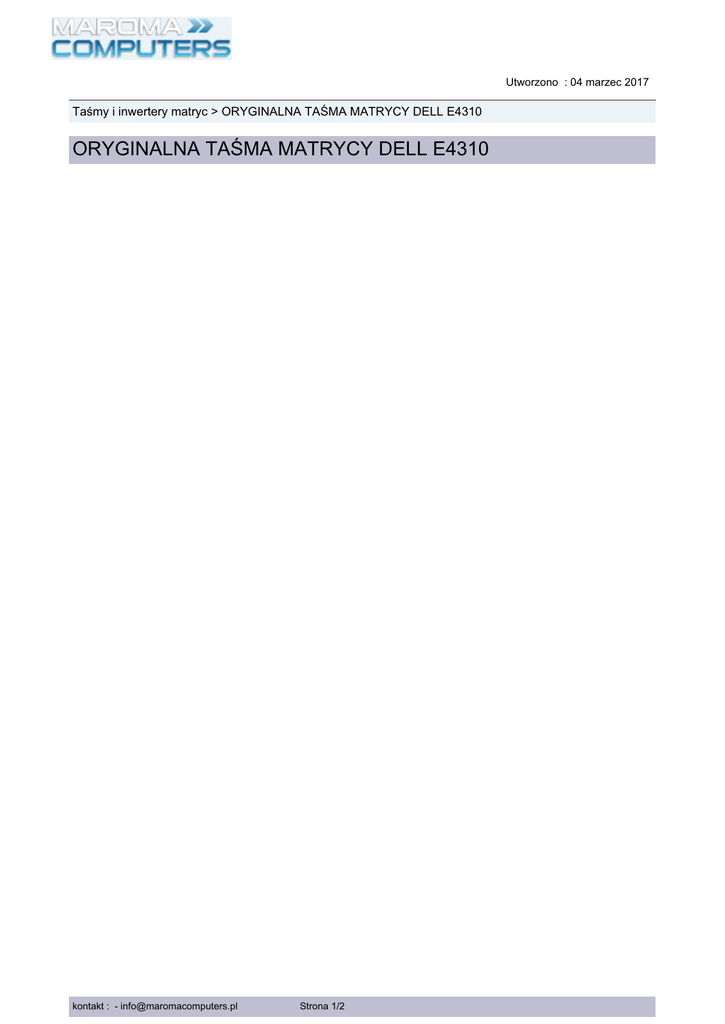 Utworzono : 04 marzec 2017 Taśmy i inwertery matryc > ORYGINALNA TAŚMA MATRYCY DELL E4310 ORYGINALNA TAŚMA MATRYCY DELL E4310 C a m ro a M kontakt : - [email protected] Strona 1/2 m o u p s r te Utworzono : 04 marzec 2017 Taśmy i inwertery matryc > ORYGINALNA TAŚMA MATRYCY DELL E4310 ORYGINALNA TAŚMA MATRYCY DELL E4310 Model : 4983 ORYGINALNA TAŚMA MATRYCY DELL E4310 s r te Producent : IBM Taśma do matrycy laptopa: Dell Latitude E4310 u p Oznaczenia NAL60 LCD CABLE P/N : DC02C000P0L REV: 1.0 (A00) Pasujące modele laptopów Dell E4310 m o Całość pochodzi z demontażu z laptopa - Dell E4310. Część oczywiście jest w pełni sprawna, przed wystawieniem została sprawdzona przez nasz serwis. C a Udzielana jest gwarancja rozruchowa (7 dni) m ro Cena : 39,00 zł Brutto ( 31,97 zł Netto) a M Dostępność: Produkt dostępny w naszym sklepie od 03 luty 2016 kontakt : - [email protected] Strona 2/2