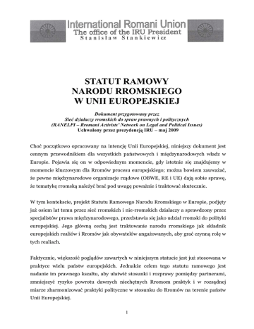 STATUT RAMOWY NARODU RROMSKIEGO W UNII EUROPEJSKIEJ