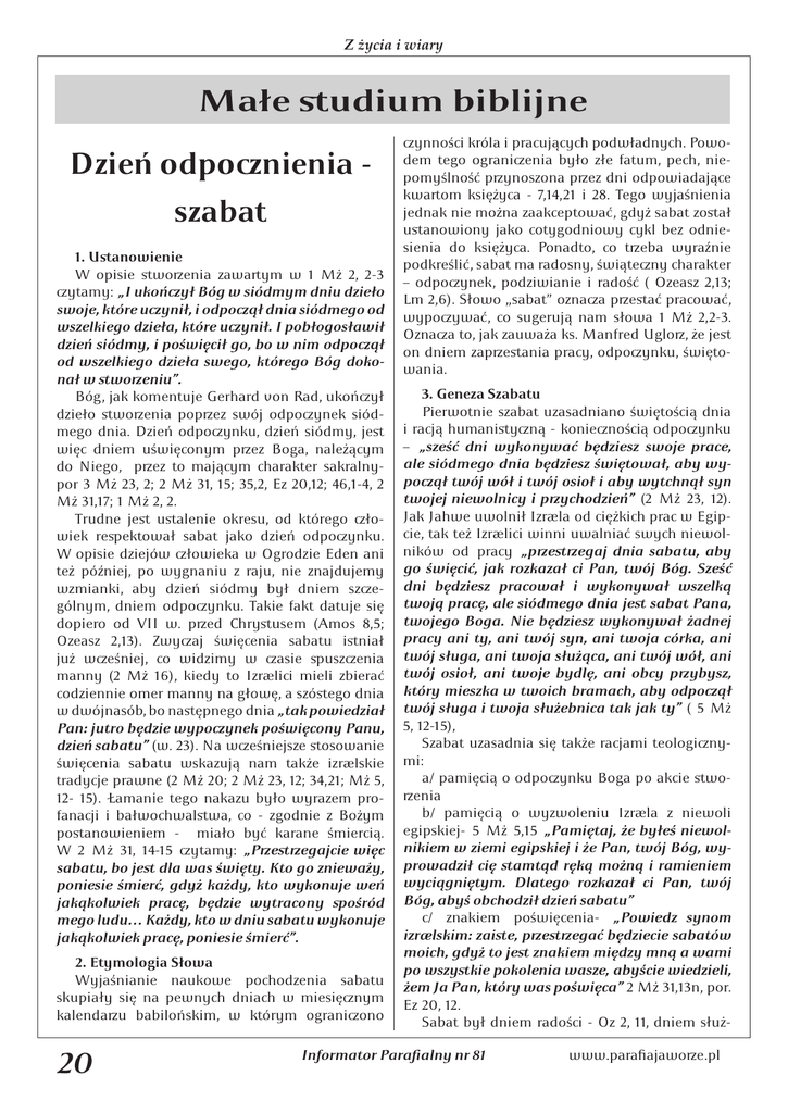 20 Małe studium biblijne Dzień odpo nienia