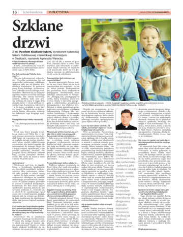 EchoKatolickie PUBLICYSTYKA Szklane drzwi numer 37(950) 12-18 września 2013 r. FOT. ARCH 16 Z ks. Pawłem Siedlanowskim, dyrektorem Katolickiej Szkoły Podstawowej i Katolickiego Gimnazjum w Siedlcach, rozmawia Agnieszka Warecka. Księże Dyrektorze, dlaczego dziś tyle wokół narzekań na szkołę? Chyba „zakiwaliśmy się” w jej reformowaniu, lekkomyślnym porzucaniu tego, co było dobre. Kto dziś wychowuje? Szkoła, dom, ulica?... Nie ma jednoznacznej odpowiedzi. Wszystko uzależnione jest od środowiska rodzinnego, szkolnego, wpływu, jaki ma na dziecko środowisko rówieśnicze. W podanym przez Panią katalogu „wychowawców” zabrakło jeszcze jednego: multimediów. Obawiam się, że mają one ogromny wpływ na rozwój młodego człowieka. Nie zawsze korzystny, niestety. Zróbmy mały test: proszę policzyć, ile czasu w ciągu dnia dziecko patrzy w ekran telefonu komórkowego, komputera, telewizora - a ile minut spogląda w oczy taty czy mamy? Obawiam się, że dysproporcja będzie olbrzymia, niestety, na niekorzyść tego drugiego spojrzenia. Proszę dokończyć: dobry nauczyciel, to… ...taki, którego pamięta się do końca życia. Ani, ten od Joli, a tamten od pani Kasi. Dziecko niesie w sobie świat wartości, jaki otrzymało w pierwszych latach rozwoju od rodziców i od nauczycieli. Jeżeli na tym poziomie zostanie on zdeformowany, straty są nie do odrobienia. Nauczyciel jest dziś mistrzem czy rzemieślnikiem? Są różni nauczyciele. Pewnie znajdą się tacy i tacy. Mówi się, że bycie nauczycielem jest zawodem - to nie do końca prawda. Profesjonalizm nie gwarantuje bycia znakomitym pedagogiem. Rozśmieszyła mnie definicja zamieszczona w Wikipedii: „Pedagog (łac. paedagogus) to osoba, która formalnie ukończyła wyższe studia o kierunku pedagogika z odpowiednią specjalnością pedagogiczną i ma właściwe kwalifikacje w danej specjalizacji pedagogicznej, potwierdzone wymaganą dokumentacją. Pedagog, jako specjalista kształcenia i wychowania, najczęściej zatrudnia się w szeroko pojętej edukacji, dbając o prawidłowy rozwój psychiczny człowieka”. Ktoś, kto stworzył definicję, od strony formalnej może i ma rację. Ale komplet dokumentów to stanowczo zbyt mały kapitał początkowy. Czyli? Czyli taki, który posiada wyjątkową osobowość! Ktoś, kto w naszej pamięci pozostawia niezatarty ślad. Kogo się wspomina nie tylko ze względu na jego wiedzę, szlachetność, pasje, sposób oddziaływania na uczniów, kto budził respekt, ale jednocześnie do którego biegło się z najskrytszymi tajemnicami, a on potrafił wysłuchać, doradzić. Nie potępiał, raczej delikatnie wskazał błąd, czasem porządnie obsztorcował. Kto cieszy się razem z nami i smuci. Po prostu jest!... Tak, na pewno. Jeśli ktoś nauczając, wymyślając nawet najlepsze programy wychowawcze, zarazem będzie stał obok - głoszone wartości nie będą mu bliskie, nic nie zdziała. Będzie nieautentyczny i jako taki szybko zostanie zdekonspirowany przez uczniów. Może wtedy stawać na głowie, kończyć kolejne „podyplomówki” i kursy, a efekt i tak będzie mikry. Jest mistrzem! Proszę dokończyć: dobra szkoła, to… Ubolewam nad tym, że zagubiliśmy w kształceniu (praktycznie na wszystkich szczeblach) średniowieczną ideę uniwersum, jedności, jaka istniała w relacji: uczeń - mistrz. To była swoista „sztafeta” osobowości, działająca na zasadzie wzajemnego przenikania się, ubogacania. W jakimś stopniu pozostało to jeszcze w szkołach muzycznych, baletowych. Po dziś dzień używa się określeń: pianista, tancerz X. jest uczniem profesora Y., wywodzi się ze szkoły N. To – parafrazując - spod czyjej ręki wyszedł pianista, muzyk, tancerz, już na wstępie go definiuje, każe spodziewać się określonego stylu, daje pewien kapitał zaufania, szacunku. Niełatwe zadanie wyznaczyła mi Pani. Mam zbyt małe doświadczenie, aby być kompetentnym w udzieleniu odpowiedzi na to pytanie. Inna jest szkoła, która liczy 200 uczniów - wtedy łatwiej się pracuje, proces edukacji i wychowania jest zindywidualizowany, inaczej rzecz się ma w tysięcznym molochu, gdzie nawet nauczyciele dobrze się nie znają, zaś dzieci zlewają się w wielką masę. Czyli ważne jest, kogo dziecko spotkało na pierwszym etapie edukacyjnym, kto był przedszkolanką, później wychowawcą klasy, kto uczył matematyki, historii? Oczywiście! Ma to zasadnicze znaczenie. Często go nie doceniamy. Przecież dla małego dziecka pani w szkole jest, zaraz po mamie i tacie, najważniejsza! Często po wielu latach edukacji bezbłędnie da się wskazać: ten uczeń jest z klasy pani Mówi się, że w kimś musi być „to coś”, aby miał w sobie moc pociągania, fascynował, stał się autorytetem… Zapytam inaczej: czy zmiany, które dziś są wprowadzane, zmierzają do unowocześnienia szkoły, poprawy efektywności jej oddziaływania? O jakich zmianach mowa? Wysyłaniu sześciolatków do pierwszych klas? Tworzeniu kolejnych rozporządzeń po to, aby je za rok nowelizować? Dokładaniu stert obowiązkowych dokumentów i obligowania nauczycieli do ślęczenia godzinami nad tabelkami i ankietami? Zmianach w prawie, które sprawiają, że uczniowi wolno coraz więcej, zaś nauczycielowi coraz mniej? Pozbawianiu szkoły wartości - w imię poprawności politycznej - i osadzaniu całego procesu edukacji na lewackich pomysłach zmiany człowieka w plastelinę?... Dziecko potrzebuje szacunku i miłości, akceptacji i wsparcia, a przede wszystkim przewodnictwa w świecie wartości. Zdjęcie przedstawia uczniów Katolickiej Szkoły Podstawowej w Siedlcach. Dopóki nie zrozumiemy, że bez zasad nie da się wychować człowieka, że koniecznie trzeba stworzyć aksjologiczne zaplecze, które stanie się fundamentem konstruowania zdrowego moralnie społeczeństwa, „para będzie szła w gwizdek”… Czym się różni szkoła katolicka od szkoły „normalnej”? Zapewne czę