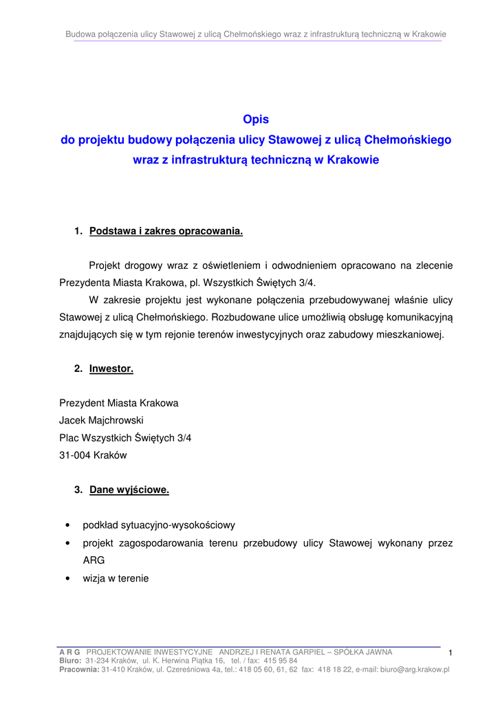 Opis do projektu budowy połączenia ulicy Stawowej z ulicą