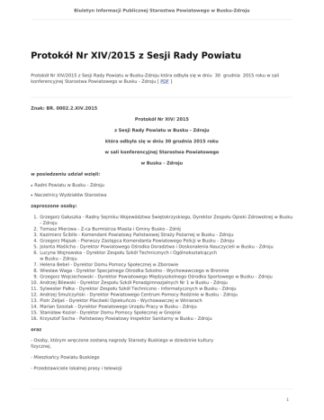 Protokół Nr XIV/2015 z Sesji Rady Powiatu - BIP