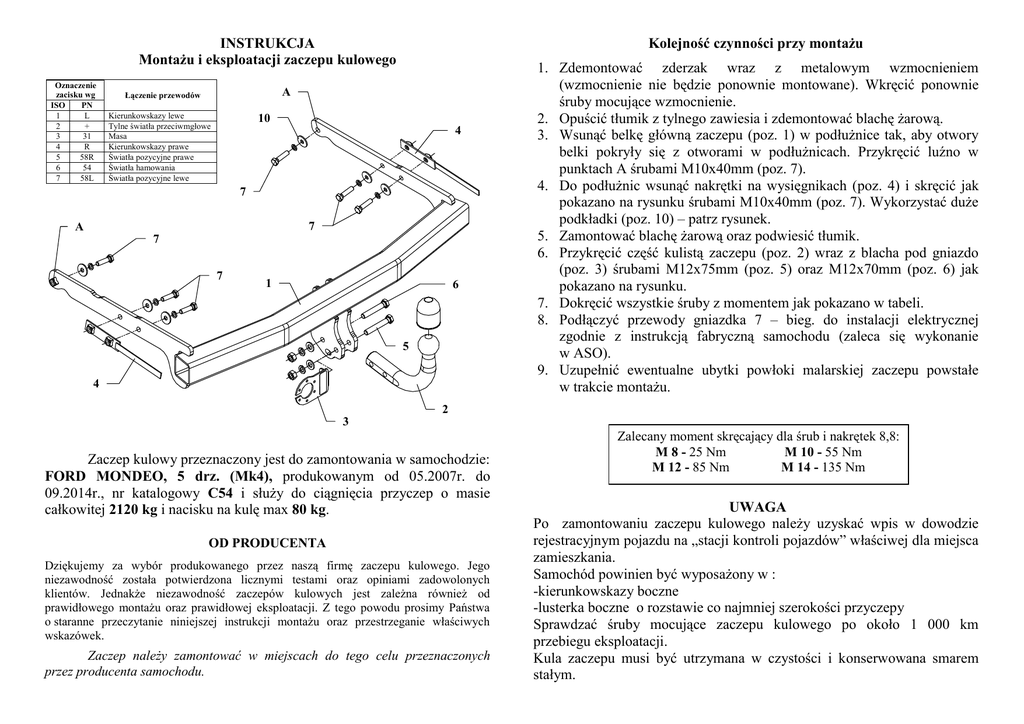 INSTRUKCJA Montażu i eksploatacji zaczepu kulowego - Auto-Hak