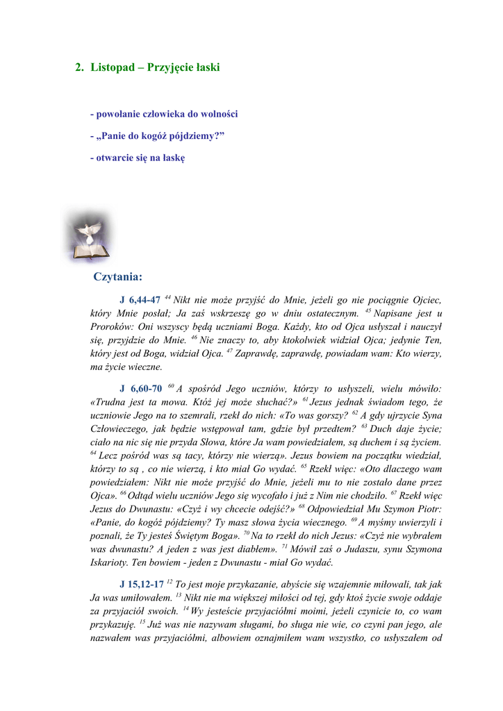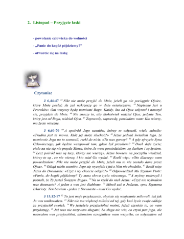 J 6,44-47 44 Nikt nie może przyjść do Mnie, jeżeli go nie pociągnie Ojciec,