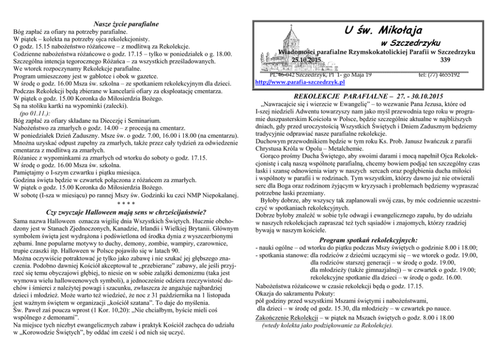 gazetka 339 - Rzymskokatolicka Parafia św. Mikołaja w Szczedrzyku