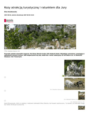 Kozy atrakcją turystyczną i ratunkiem dla Jury Eliza Kwiatkowska 2007-08-05, ostatnia aktualizacja 2007-08-05 22:02 Fot. Sebastian Adamus / AG Przyroda zyskała niezwykłe wsparcie. Na Górze Zborów bryka 150 młodych kózek. Wyjadając samosiewy, pomagają w odbudowie cennych muraw. Jeśli eksperyment się uda, stada kóz i owiec zobaczymy za rok takŜe m.in. w okolicach Olsztyna i Gór Towarnych. Fot. Sebastian Adamus / AG Fot. Sebastian Adamus / AG Fot. Sebastian Adamus / AG Kamil Brzozowski, który w sobotę z rodzicami odwiedził Górę Zborów, był kozami zachwycony. To dowód, Ŝe zwierzęta mogą być takŜe atrakcją turystyczną Fot. Sebastian Adamus / AG Strome zbocze Góry Zborów od strony wsi Podlesice wygląda jak zwykle. Białe wapienne skałki jeŜą się między krzewami i małymi drzewkami. Na pozór bezruch. Pojawia się dwóch męŜczyzn, którzy wybrali się na wycieczkę po rezerwacie. Nagle ściana zbocza zaczyna się poruszać. - Ojej, tu są kozy - krzyczy jeden z nich. Są totalnie zaskoczeni, bo zwierzęta wkomponowały się w krajobraz jak kameleony. 150 kóz z hodowli Mariana Garbaciaka pasie się na Górze Zborów juŜ tydzień. Nie przywędrowały z gospodarstwa we Włodowicach, by odpoczywać. Mają konkretne zdanie - pomóc w odbudowie cennych przyrodniczo muraw kserotermicznych, którym zagraŜają rosnące samosiewy. To jeden z głównych problemów Jury. - Kozy to takie naturalne kosiarki - opowiada Marcel Ślusarczyk, geograf i koordynator akcji. - Świetnie sobie radzą z samosiewami, po prostu je wyskubując. Nie moŜemy pozwolić, by Jura zarosła, bo straci swój charakter, a murawy, które lubią słoneczne i ciepłe stanowiska, po prostu znikną. Przez dziesiątki lat nie było tego problemu, bo rozwijało się tu pasterstwo. Zanik tej formy działalności spowodował negatywne zjawiska w naturalnym środowisku. Próbowaliśmy mechanicznie kosić samosiewy, ale nie przyniosło to długotrwałych efektów - po trzech latach wszystko odrosło. Dlatego właśnie w ubiegłym roku zrodził się pomysł, by eksperymentalnie wpuścić na Górę Zborów stado kóz. Porozumienie w tej sprawie podpisali Zespół Parków Krajobrazowych Województwa Śląskiego, Towarzystwo Miłośników Ziemi Zawierciańskiej, Uniwersytet Śląski, Polski Związek Alpinizmu i Urząd Marszałkowski. Strony postanowiły, Ŝe wypas będzie pilotaŜowym projektem wdraŜanego przez województwo śląskie programu "Owca Plus". Jego celem jest ochrona i promocja pasterstwa jako elementu dziedzictwa kulturowego Jury i Beskidów. Rozwój pasterstwa to takŜe szansa na aktywizację gospodarczą regionu - nowe miejsca pracy w hodowli, przetwórstwie i turystyce. Program od dwóch lat sprawdza się juŜ w województwie małopolskim. Do udziału w eksperymencie zaproszono największego hodowcę kóz w regionie - częstochowianina Mariana Garbaciaka, który w gospodarstwie we Włodowicach ma około 700 zwierząt. Z ochotą przystał na pomysł, zorganizował spęd leśnymi drogami, sam pokrył wszelkie koszty i zrobił zagrodę dla zwierząt na Górze Zborów. - Wyselekcjonowałem 150 młodych kózek, których nie trzeba jeszcze doić - opowiada. - Trochę się o nie martwię, bo na co dzień pasą się raczej na płaskim terenie, ale mam nadzieję, Ŝe wszystko się uda. Kozami zaopiekowali się pracownicy rezerwatu Góra Zborów, bo apel o wolontariuszy nie przyniósł rezultatu. W pobliŜu koziej zagrody rozbili namioty, by czuwać nad stadem dzień i noc. - Pierwszy raz w Ŝyciu zetknęłam z kozami - opowiada Anna Szymańska. - Podobnie jak moje koleŜanki, nie miałam Ŝadnego doświadczenia w tym względzie. Właściciel stada uczył nas, jak wydawać komendy, jak je poić, kiedy je wyprowadzać, a kiedy wprowadzać do zagrody. Są naprawdę miłe i bardzo inteligentne. Przychodzą do nas i domagają się pieszczot. Po kilku dniach obserwacji juŜ wiem, Ŝe wszystkie się róŜnią i nie ma dwóch takich samych. Nieco większe doświadczenie niŜ koleŜanki ma Zbigniew Śliwiński, jedyny męŜczyzna w obsłudze rezerwatu. - Często jeŜdŜę jako wychowawca kolonijny w góry, gdzie moŜna obserwować hodowle owiec, które są duŜo spokojniejsze i łagodniejsze. Łatwiej nad nimi zapanować. Kozy mają swoje humory i są uparte - dzieli się wraŜeniami. JuŜ po tygodniu zbocze Góry Zborów opustoszało z drzewek i krzewów. - Sierpień to najlepszy czas na taki wypas - podkreśla Ślusarczyk. - Kozy zjedzą tylko to, co trzeba, pozostałe cenne roślinki są juŜ po wegetacji. W poniedziałek kozy wracają do domu. Teraz efektom eksperymentu przyjrzą się m.in. naukowcy z Uniwersytetu Śląskiego. TakŜe od ich opinii zaleŜy, czy będzie on kontynuowany w przyszłym roku i powielony w innych miejscach Jury, m.in. w okolicach Rzędkowic, Ogrodzieńca, Olsztyna czy w Górach Towarnych. Docelowo jednak wypasane mają być nie kozy, ale owce rasy olkuskiej. Źródło: Gazeta Wyborcza Częstochowa http://miasta.gazeta.pl/czestochowa/1,35271,4366742.html