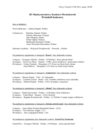 Na podstawie regulaminu w kategorii “Kosze” Jury dokonało wyboru