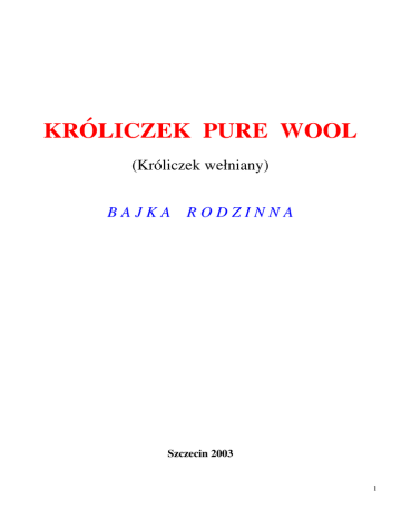 KRÓLICZEK PURE WOOL (Króliczek wełniany) BAJKA RODZINNA Szczecin 2003 1 Tekst: Ilustracje: Przygotował do druku: Muzyka: Krzysztof Jagielski Dziadek Alicja i Urszula Konkol Bliźniaczki – Wnuczki, uczennice pierwszej klasy Szkoły Podstawowej Marek Korpik, Ojciec Chrzestny Urszuli ??? (nie znaleziono kompozytora w rodzinie) Redakcja: Krzysztof Jagielski Wydawca: Krzysztof Jagielski Rok wydania: grudzień 2003 Szczecin Wszelkie prawa zastrzeżone, chronione Unijnym prawem autorskim. Zabrania się przedrukowywania, kopiowania, nagrywania obrazem i dźwiękiem, cytowania w mediach. W razie nie poszanowania mojego prawa, będę domagał się przed sądem jednego miliona dolarów odszkodowania za poniesione straty moralne. Wydrukowano 4 (cztery) ściśle ponumerowane egzemplarze Pierwszy otrzymują - Alicja i Urszula Konkol Drugi - Krzysztof Jagielski Trzeci - Hania i Olivka - wnuczki Państwa Luizy i Andrzeja Kamińskich Czwarty - Emma Jagielska urodzona 18 marca 2004 roku Adres autora tekstu i wydawcy: [email protected] 2 Część I Jesteśmy bliźniaczkami. Urszula i Alicja. - Alicja jest moją starszą siostrą. O minutę. - Urszula jest młodsza i musi mnie słuchać. Ale jest jak jest, więc opiekuję się nią i ustępuję we wszystkim. Jednak, to ja pierwsza ujrzałam salę porodową i należy mi się prawo majoratu, chociaż nie jestem synem. - Jaka ona ważna, ale tak naprawdę nie da się nic zmienić, że jestem tą drugą. (śpiewają) Po co te gadania, Rozważania, wymądrzania. Jak kropelki wody Nie do rozpoznania. Choć z jednego jaja, „Charakterki” mamy! Ale - się kochamy. Ala okrąglutka, Ula wyrośnięta. Lecz którz nas rozróżni, Nas bliźnięta! Wspaniale jest u babci i dziadka. Pozwalają nam na wszystko i mają więcej cierpliwości niż Rodzice, których to denerwuje, ale Dziadkowie powtarzają - my jesteśmy od rozpieszczania, a wy od chowania. A do tego mają fantastyczne, wielkie łóżko. Odstępują je, gdy śpimy u nich. Czujemy się wtedy jak na chmurce puchowej, która niesie nas w kolorowe sny. I jeszcze coś – to ogromne dziadkowe biurko. Dziadek bez szemrania wyprowadza się ze swoim laptopem do drugiego pokoju, chociaż wiemy, że na innych fuka i wścieka się. Na tym biurku mamy wiele miejsca do rysowania. Robimy to od niepamiętnych czasów a Dziadek przypomina nam, że te niepamiętne czasy to zaledwie pięć lat. Teraz chodzimy do pierwszej klasy. 3 Z ochów, achów jakie słyszymy od dziadków domyślamy się, że malowanki podobają się. Podobno mamy talent, a to dla tego, jak wyjaśnia Dziadek, bo biurko jest zaczarowane. Wszystko w tym domu jest tajemnicze. Dziadek jest żartowniś, to my wiemy, ale może czary gdzieś się kryją? Może w obrazach zapełniających każdy skrawek ścian, a może w trochę zakurzonych dziesiątkach książek spoczywających na regałach? (Dziadek śpiewa) W ciemnej piwnicy Hu, hu- duch się błąka Kajdanami brzdąka! Pająk pajęczynę plecie, Oplata rupiecie, Stare kanapy, fotele. I biurko, które Z wami dzielę. Dwieście lat tam stało, Aż się rozsypało, Zszarzało, sczerniało. I kiedyś w piwnicy Hu, hu – gdzie duch się snuje Słyszę lamenty, Jęki, wołania: - Jestem do uratowania, Gotów do szorowania, Politurowania, Naprawiania! I do .... czarowania! Hu, hu! Serce miałem czułe I do tego miękkie... Biurko stoi tutaj I wygląda pięknie. I powiem wam, Co z gęsią skórką czuję... - ono czaruje! 4 E, tam. Dziadek duby smalone opowiada ale nieraz ołówek naszą rękę wodzi i sam obrazki składa. Tancerki, księżniczki, modelki mrużą do nas oko. Wołamy Babcię by sama to zobaczyła, ale ona głaszcze nas po głowie, całuje i mawia – już ja się z Dziadkiem policzę! To jeszcze nic. Nad biurkiem, na lampce wisi na złotej nitce nieduży, mleczno kawowy króliczek pure wool. Nie wolno go nam dotykać. Nigdy się nim nie bawiłyśmy. Dziadek wspomniał tylko, że dawno temu kupił go w Londynie na pchlim targu. Wiemy, że Londyn jest stolicą Anglii i Dziadek obiecał nam, że jak trochę podrośniemy, to polecimy tam samolotem. Gdy tak sobie malujemy, rysujemy przy zaczarowanym biurku, króliczek pure wool nieraz do nas łapką macha, to strzyga uszami, to oczkiem zamruga a nawet czerwonym pyszczkiem się uśmiecha. O tym opowiadamy tylko Dziadkowi, a on mówi, że do niego też, i to od wielu, wielu lat, jeszcze nas na świecie nie było. Wydaje mu się, że króliczek jest naprawdę zaczarowany ale nie wolno nikomu o tym wspominać. To jest nasza bardzo ważna, bardzo tajemnicza tajemnica i dajemy słowo harcerek, że pozostanie tylko naszą tajemniczą tajemnicą. Dziadek tłumaczy nam, że najważniejsze na świecie jest słowo harcerskie, i że się kiedyś o tym przekonamy. Ale najfajniej jest po kąpieli, po kolacji gdy w łożu dziadków czujemy się jak królowe. I chociaż oczy nam się kleją, to nie chcemy jeszcze spać. Czekamy na bajki, o które bardzo prosimy, a nawet stanowczo domagamy się. Jak byłyśmy bardzo malutkie Babcia sama je zmyślała. Kończyły się nieodmiennie królewiczami i królewnami. Tak się nam wydaje, bo chyba zasypiałyśmy nim one i oni się zjawiali. A później, gdy byłyśmy starsze to płynęła rzeka gawęd, czytanych dziecięcych opowieści. Znamy je na pamięć i głośno oburzamy się gdy Dziadek wtrąca w nie często swoje bajdurzenia. Ale są wieczory, gdy bawimy się w „teatrum” jak mawia Dziadek. To już jest szaleństwo. (dziadek) Sznowna pupliko ! (przeważnie jest nią Babcia-) Zaszczycamy, przedstawiamy, Wielkie artystki i damy Spalonych teatrów! I niech mnie porwie licho Jeśli dzisiaj nie zagramy„Czerwonego Kapturka” (babcia gwiżdże na palcach) Nie, to nie powtórka. To wielki dramat 5 Na trzy wielkie role. Jam wilk, co da się we znaki, Czerwone kapturki – bliźniaki. Melpomeno – nalej wina Przedstawienie się zaczyna! (dziadek podchodzi do babci) Ha, ha łakom na cię pozieram Ha, ha i już cię poż