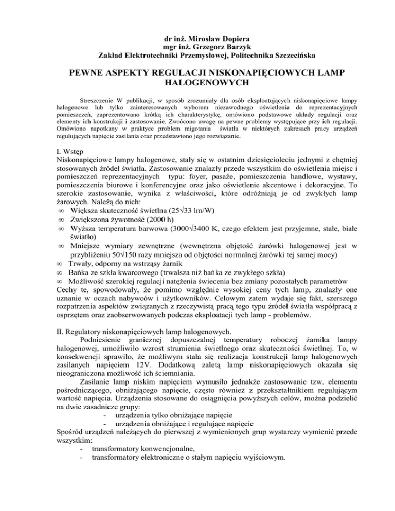 Pewne aspekty regulacji niskonapięciowych lamp halogenowych