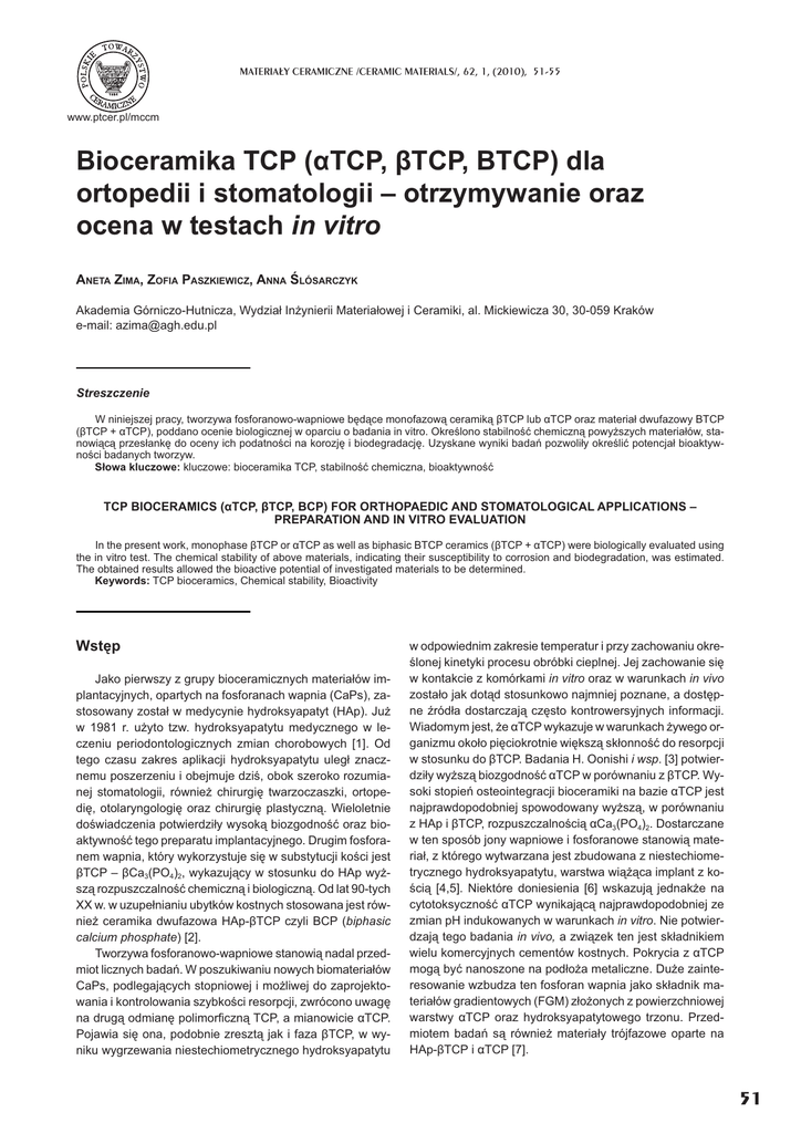 Bioceramika TCP ( TCP, TCP, BTCP) dla ortopedii i stomatologii