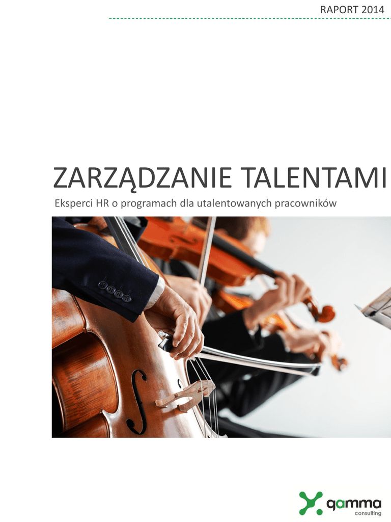 RAPORT 2014 ZARZĄDZANIE TALENTAMI Eksperci HR o programach dla utalentowanych pracowników 16 maja 2014 roku w ramach Dnia Otwartego „Gamma jakiej nie znacie”, Gamma Consulting przeprowadziła warsztat dla pracowników działów HR „Koniec wojny o talenty?”. Uczestnicy dyskutowali głównie na temat definiowania profilu utalentowanego pracownika i doboru efektywnych działań rozwojowych. Poruszona została również kwestia różnicy pomiędzy „potencjałem”, a „talentem” oraz proaktywnego zarzadzania talentami. Poniższy raport powstał na podstawie ankiet, które uczestnicy wypełnili na zakończenie warsztatu. RESPONDENCI W ankiecie udział wzięło 12 pracowników działów HR, ekspertów odpowiedzialnych za rozwój pracowników w organizacjach z różnych branż m. in. budowlanej, finansowej, IT i spożywczej, zatrudniających powyżej 100 osób. Większość respondentów to jednak osoby wspierające doskonalenie zawodowe w bardzo dużych organizacjach – 42% pracuje w firmach zatrudniających od 1001 do 3000 pracowników, a 25% w korporacjach o zatrudnieniu przekraczającym 3001 osób. W organizacjach ponad połowy naszych respondentów (67%), w ciągu ostatnich 3 lat został przeprowadzony program dla utalentowanych pracowników, zatem większość osób badanych miała praktyczne doświadczenia w zakresie działań typu „talent management”. CEL BADANIA Przeprowadzona ankieta miała na celu zebrać opinie i oczekiwania pracowników działów HR odpowiedzialnych za rozwój pracowników dotyczące działań związanych z realizacją programów dla utalentowanych pracowników. UTALENTOWANY PRACOWNIK W ramach warsztatu „Koniec wojny o Talenty?” uczestnicy dyskutowali kim jest utalentowany pracownik. Większość propozycji definicji była spójna z założeniem Gamma Consulting, iż „talent to predyspozycje pracownika przejawiające się większą niż przeciętna sprawnością w dziedzinie kluczowej dla zwiększania efektywności funkcjonowania danej organizacji”. W kontekście tak zdefiniowanego pojęcia talentu uczestnicy analizowali różne koncepcje programów dla utalentowanych pracowników. 2 BUDOWA ANKIETY Pytania ankiety zostały tak zbudowane, aby dostarczyć informacje dotyczące opinii ekspertów HR na temat różnych aspektów związanych z realizacją programów dla utalentowanych pracowników m.in. miejsce talent management na liście priorytetów HR waga talent management dla organizacji proponowany podział odpowiedzialności za poszczególne działania w ramach talent management założenia czasowe programów talent management trudności napotykane w trakcie trwania programów talent management 92% OTRZYMANE WYNIKI 25% respondentów jako najbardziej priorytetowe działanie HR w swojej organizacji wskazało stworzenie ścieżek karier/rozwoju. Realizacja programów dla utalentowanych pracowników znalazła się na drugim miejscu priorytetów określanych przez badanych (jako priorytet wskazało je 17% ankietowanych). Ponadto 33% respondentów określiło realizację programów dla utalentowanych pracowników jako bardzo ważne działanie w organizacji. Natomiast prawie połowa (42%) ankietowanych określiła je jako ważne, a 25% zaznaczyło odpowiedź „trudno powiedzieć”. Żaden z respondentów nie uznał talent managementu za działanie niezbyt ważne lub nieważne, co może oznaczać, iż „wojna o Talenty” nie ma się jeszcze ku końcowi. Warto podkreślić, iż wyniki ankiety wskazują, jak istotne jest, według badanych ekspertów HR, zaangażowanie wszystkich grup interesariuszy oraz doradców zewnętrznych w tworzenie poszczególnych etapów programu dla utalentowanych pracowników. Poniższy wykres przedstawia opinie respondentów, dotyczące tego, kto w organizacji, powinien brać udział w określaniu profilu utalentowanego pracownika. 75% 67% 58% 8% DZIAŁ HR ZARZĄD CAŁA KADRA MENEDŻERSKA DOŚWIADCZONY DORADCA/ FIRMA BEZPOŚREDNI PRZEŁOŻONY 3 Zarówno w przypadku definiowania profilu utalentowanego pracownika, jak i w przypadku określania strategii i założeń programów talent management najwięcej respondentów wskazało jako kluczową rolę HR – odpowiednio 92% i 100%. Warto podkreślić, iż aż 75% ankietowanych uznało za bardzo ważny w procesie określania profilu talentu udział całej kadry menedżerskiej. Przy tworzeniu koncepcji programu (profil i strategia) ponad 50% badanych dostrzegło jak ważna jest rola doświadczonego doradcy. Zapytani o to, kto powinien realizować działania rozwojowe w ramach programu dla utalentowanych pracowników, ankietowani najczęściej wskazywali dział HR (75%) i przełożonych uczestników programu (75%). Przełożeni uczestników programu zostali uznani przez 92% respondentów za osoby kluczowe w zakresie monitorowania działań rozwojowych. Dział HR wskazało natomiast 83% badanych. Oznacza to, iż eksperci HR postrzegają te dwie grupy interesariuszy jako kluczowe na etapie realizacji strategii programu (poziom operacyjny). Interesujący może wydać się również fakt, że 33% ankietowanych uznało uczestników programu za grupę odpowiednią do monitorowania działań rozwojowych. Powyższy wynik jest zgodny z ogólnym trendem obserwowalnym w obszarze zarządzania zasobami ludzkimi, który odpowiedzialność za własny rozwój przypisuje pracownikowi. Wykres przedstawia opinię respondentów, dotyczącą tego, kto w organizacji, ich zdaniem, powinien być odpowiedzialny za realizację działań rozwojowych w ramach programów dla utalentowanych pracowników. 75% 75% 50% 42% 8% DZIAŁ HR FIRMA ZEWNĘTRZNA RÓŻNE FIRMY ZEWNĘTRZNE PRZEŁOŻENI UCZESTNIKÓW PROGRAMU EKSPERCI WEWNĘTRZNI 4 100% ankietowanych uważa, że efektywny program dla utalentowanych pracowników powinien trwać od roku do dwóch lat. Jako najtrudniejszy do realizacji etap programu dla utalentowanych pracowników 50% respondentów uznało zaplanowanie działań dla uczestników progra