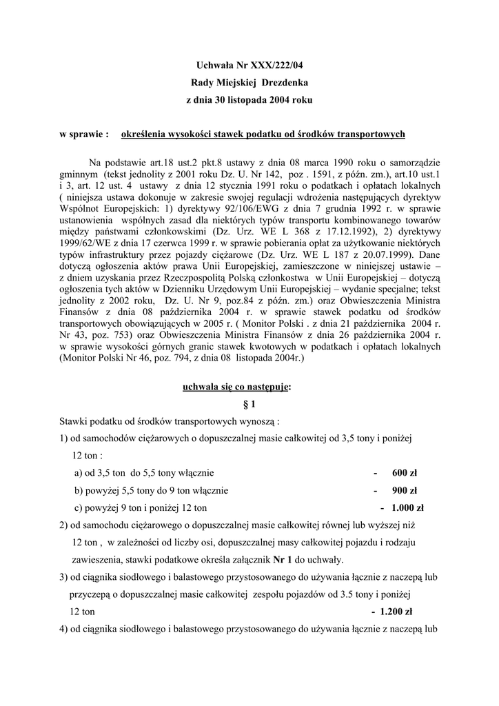 Uchwała Nr XXX/222/04 Rady Miejskiej Drezdenka