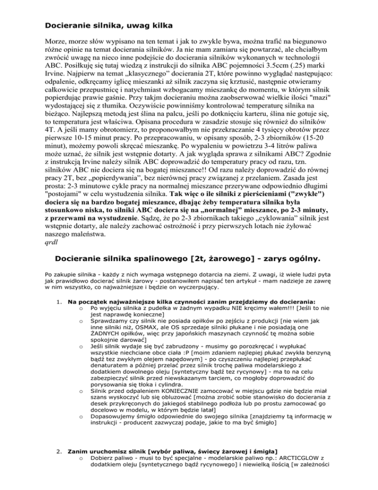 różne opinie na temat docierania silników. Ja nie mam zamiaru się powtarzać, ale chciałbym