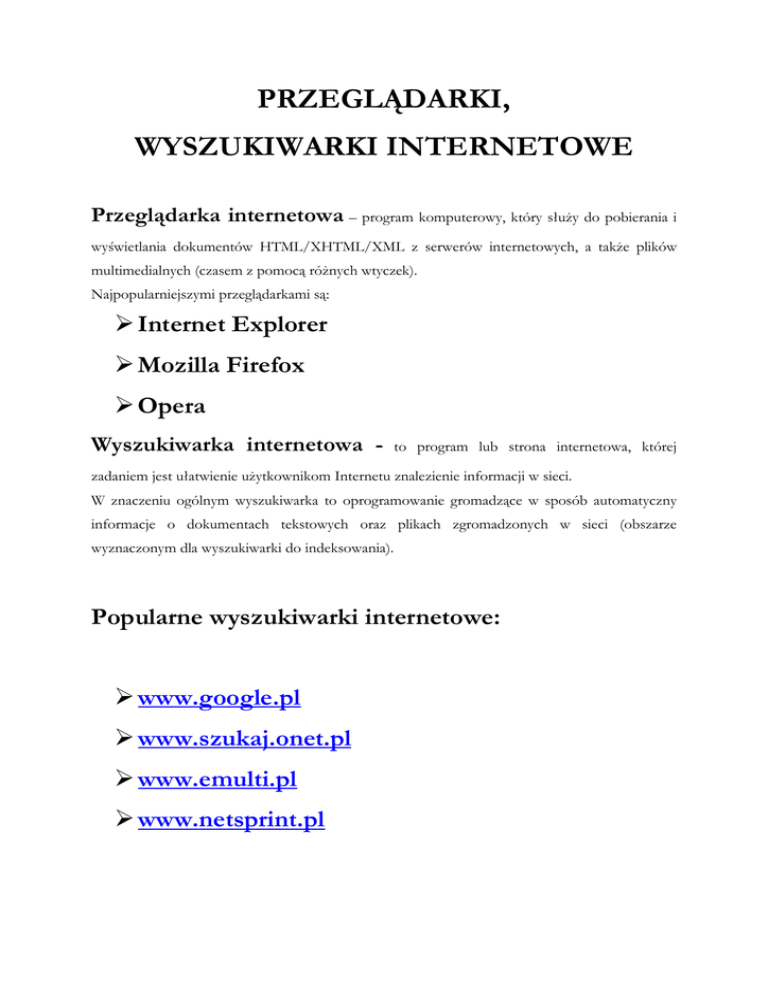 PRZEGLĄDARKI, WYSZUKIWARKI INTERNETOWE