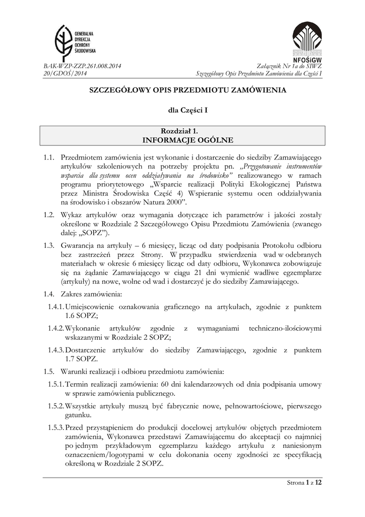 Szczegółowy Opis Przedmiotu Zamówienia dla Części I