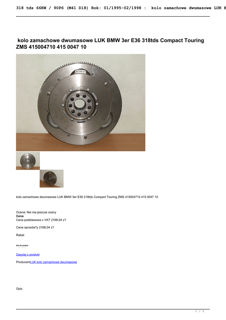 kolo zamachowe dwumasowe LUK BMW 3er E36 318tds Compact