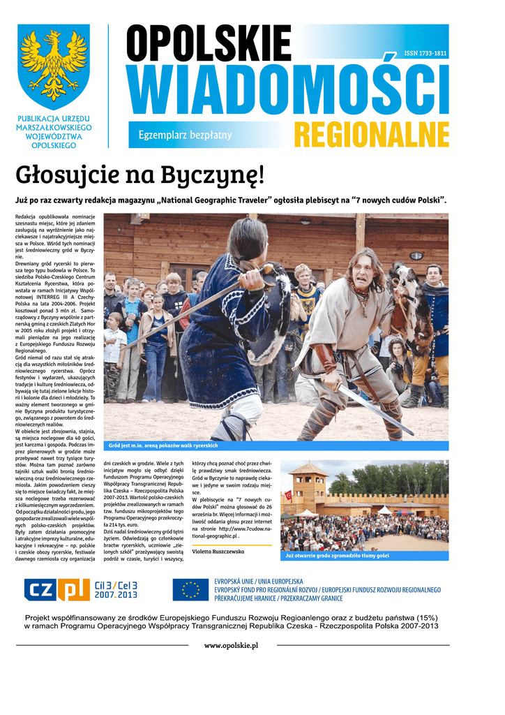 Głosujcie na Byczynę! Już po raz czwarty redakcja magazynu „National Geographic Traveler” ogłosiła plebiscyt na “7 nowych cudów Polski”. Redakcja opublikowała nominacje szesnastu miejsc, które jej zdaniem zasługują na wyróżnienie jako najciekawsze i najatrakcyjniejsze miejsca w Polsce. Wśród tych nominacji jest średniowieczny gród w Byczynie. Drewniany gród rycerski to pierwsza tego typu budowla w Polsce. To siedziba Polsko-Czeskiego Centrum Kształcenia Rycerstwa, która powstała w ramach Inicjatywy Wspólnotowej INTERREG III A CzechyPolska na lata 2004-2006. Projekt kosztował ponad 3 mln zł. Samorządowcy z Byczyny wspólnie z partnerską gminą z czeskich Zlatych Hor w 2005 roku złożyli projekt i otrzymali pieniądze na jego realizację z Europejskiego Funduszu Rozwoju Regionalnego. Gród niemal od razu stał się atrakcją dla wszystkich miłośników średniowiecznego rycerstwa. Oprócz festynów i wydarzeń, ukazujących tradycje i kulturę średniowiecza, odbywają się tutaj zielone lekcje historii i kolonie dla dzieci i młodzieży. To ważny element tworzonego w gminie Byczyna produktu turystycznego, związanego z powrotem do średniowiecznych realiów. W obiekcie jest zbrojownia, stajnia, są miejsca noclegowe dla 40 gości, jest karczma i gospoda. Podczas imprez plenerowych w grodzie może przebywać nawet trzy tysiące turystów. Można tam poznać zarówno tajniki sztuk walki bronią średniowieczną oraz średniowiecznego rzemiosła. Jakim powodzeniem cieszy się to miejsce świadczy fakt, że miejsca noclegowe trzeba rezerwować z kilkumiesięcznym wyprzedzeniem. Od początku działalności grodu, jego gospodarze zrealizowali wiele wspólnych polsko-czeskich projektów. Były zatem działania promocyjne i atrakcyjne imprezy kulturalne, edukacyjne i rekreacyjne – np. polskie i czeskie obozy rycerskie, festiwale dawnego rzemiosła czy organizacja Gród jest m.in. areną pokazów walk rycerskich dni czeskich w grodzie. Wiele z tych inicjatyw mogło się odbyć dzięki funduszom Programu Operacyjnego Współpracy Transgranicznej Republika Czeska – Rzeczpospolita Polska 2007-2013. Wartość polsko-czeskich projektów zrealizowanych w ramach tzw. funduszu mikroprojektów tego Programu Operacyjnego przekroczyła 214 tys. euro. Dziś nadal średniowieczny gród tętni życiem. Odwiedzają go członkowie bractw rycerskich, uczniowie „zielonych szkół” przeżywający swoistą podróż w czasie, turyści i wszyscy, którzy chcą poznać choć przez chwilę prawdziwy smak średniowiecza. Gród w Byczynie to naprawdę ciekawe i jedyne w swoim rodzaju miejsce. W plebiscycie na “7 nowych cudów Polski” można głosować do 26 września br. Więcej informacji i możliwość oddania głosu przez internet na stronie http://www.7cudow.national-geographic.pl . Violetta Ruszczewska www.opolskie.pl Już otwarcie grodu zgromadziło tłumy gości Lipiec 2014 Opolskie Wiadomości Regionalne EDUKACJA Tysiące telefonów, setki wizyt Z Adamem Kojem z Regionalnego Centrum Rozwoju Edukacji, kierownikiem projektu “Szkolnictwo zawodowe bliżej rynku pracy”, rozmawia Maria Szylska: - Projekt „Opolskie szkolnictwo zawodowe bliżej rynku pracy” osiągnął półmetek, ale niektóre jego założenia już zostały sfinalizowane. - To prawda. Tak jest w przypadku pracowni kształcenia zawodowego oraz eksperymentalnych pracowni chemicznofizycznych. Tych pierwszych miało powstać pięćdziesiąt, ale ponieważ zaoszczędziliśmy na przetargach, udało się zakupić specjalistyczny sprzęt do pięćdziesięciu czterech. W pracownie chemiczno-fizyczne wyposażyliśmy pięćdziesiąt szkół. - Które z nich robią największe wrażenie? - To są rzeczy nieporównywalne. Wspaniale na przykład prezentuje się pracownia w Technikum Elektrycznym w Opolu, bo szkoła sporo zainwestowała w rozbudowę pomieszczeń. W Zespole Szkół Żeglugi Śródlądowej uczniowie chwalą sobie dwie nowe pracownie – nawigacji i informatyczną. A z kolei w Zespole Szkół nr 1 w Kędzierzynie-Koźlu ich pracownia przypomina mini restaurację – jest sala bankietowa, profesjonalny ekspres do kawy, zastawy stołowe czyli pole do ćwiczeń dla gastronomów, baristów, kelnerów. Ten sam zespół szkół otrzymał też nowoczesną pracownię logistyczną, w której największą wartość stanowią nie tyle komputery, co specjalistyczne oprogramowanie. W Zespole Szkół Mechanicznych w Opolu działa nowoczesna pracownia diagnostyki pojazdów mechanicznych, w opolskim „ekonomiku” pracownia cyfrowych procesów graficznych, a w ZSP Dobrodzień pracownia handlowa z pełnym stanowiskiem kasowym, na wzór supermarketów. - A na czym polega eksperymentalność w pracowniach chemiczno-fizycznych? - Przede wszystkim na tym, że zakupione urządzenia pozwalają na przeprowadzenie kilkudziesięciu ćwiczeń, dostosowanych do profilu nauczania. Rolnicy mogą na przykład badać kwasowość gleby, leśnicy jej Adam Koj wilgotność, przyszli mechanicy przeprowadzają doświadczenia z kinetyki. - Uczniowie mają za sobą niemal tysiąc czterotygodniowych praktyk krajowych i zagranicznych. Jakie są efekty ich pobytów w firmach? - Powiedziałbym: budujące. Na przykład w zakrzowskiej Lewadzie, po odbytej praktyce, dwóm uczniom zaproponowano pracę. Z kolei opolska Nutricia zaoferowała kilku praktykantom dodatkowy staż, by móc lepiej poznać potencjalnych kandydatów do pracy. Z Hotelu Spałka w Kluczborku mamy informacje, że są bardzo zadowoleni z przysłanych praktykantów. Ciekawe praktyki zaproponowała elektronikom i elektrykom z Zespołu Szkół Elektrycznych w Opolu katowicka firma PW Polmar, która wykonuje instalacje monitoringu w dużych obiektach zlokalizowanych w całej Polsce. Praktykanci jeździli z ich ekipami po kraju. Byli w stałym kontakcie telefonicznym ze swoim nauczycielem zawodu, bo kilkakrotnie konsultowali jak rozwiązać jakiś ambitny problem techniczny. Okazał