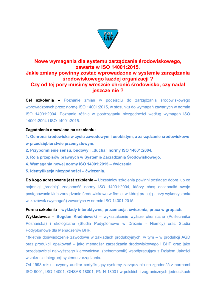 ISO 14001:2015 Zmiany w normie
