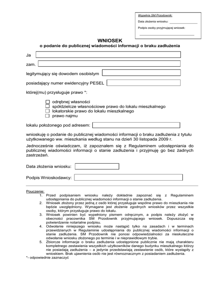 Wniosek o przesłanie informacji dotyczących zadłużenia