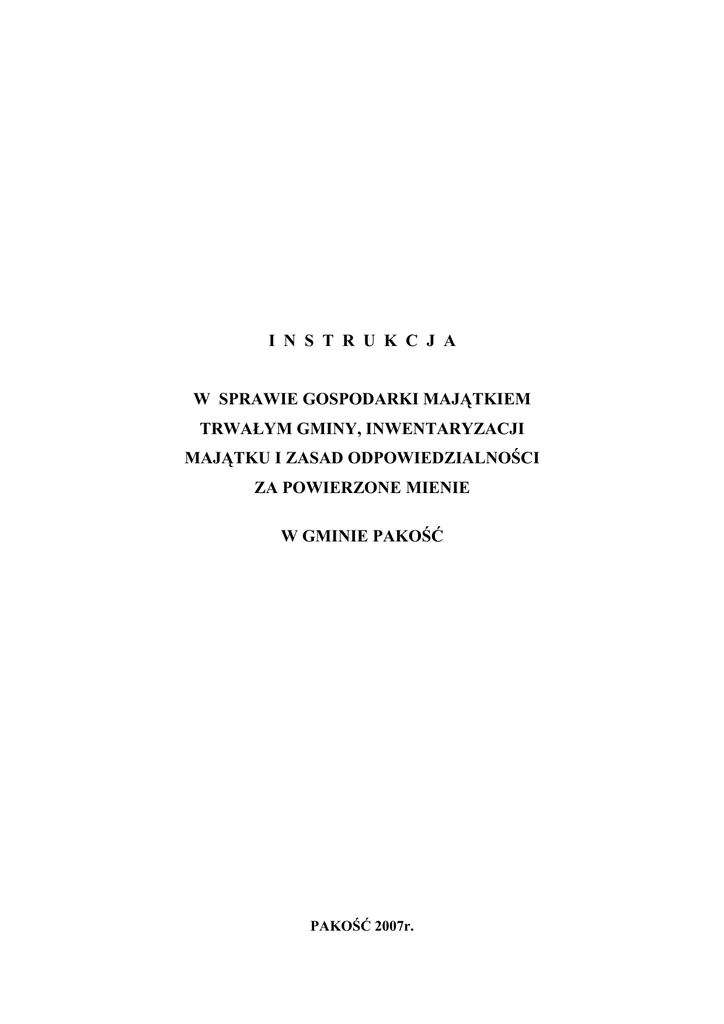 do Zarządzenia Nr 28/07 Burmistrza Pakości z dnia 30 kwietnia 2007r.