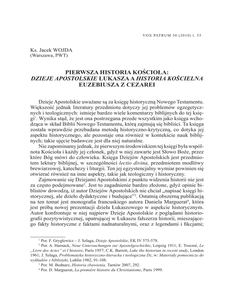 DZIEJE APOSTOLSKIE ŁUKASZA A HISTORIA KOŚCIELNA