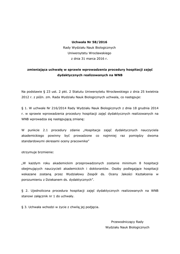 Uchwała nr 58/2016 - Wydział Nauk Biologicznych