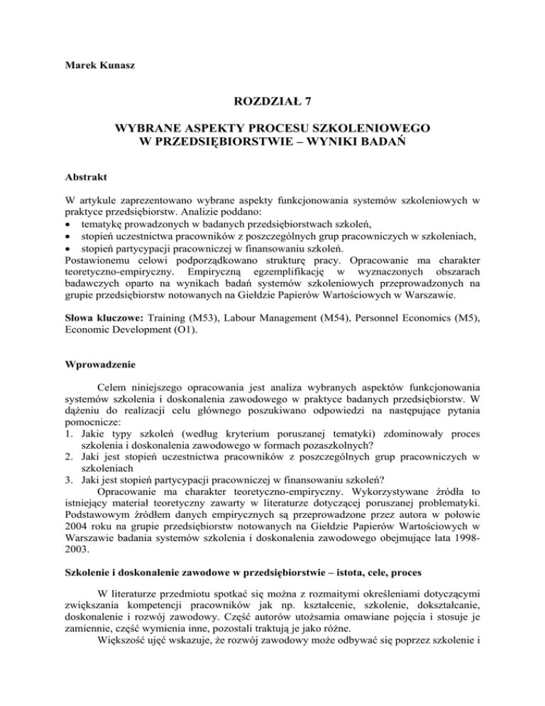 ROZDZIAŁ 7 WYBRANE ASPEKTY PROCESU SZKOLENIOWEGO