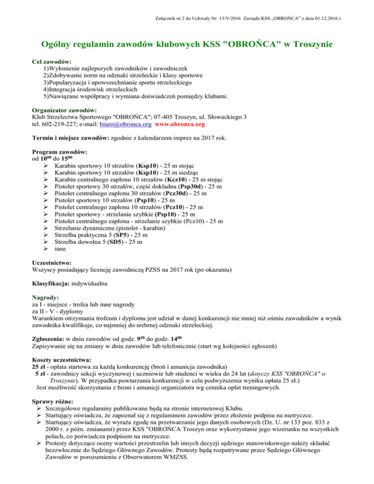 Ogólny regulamin zawodów klubowych KSS "Obrońca" w Troszynie