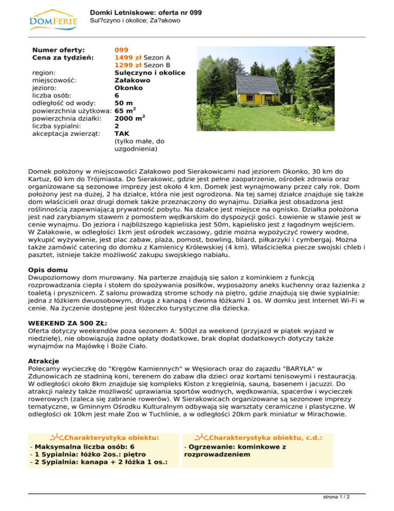 Domki Letniskowe: oferta nr 099