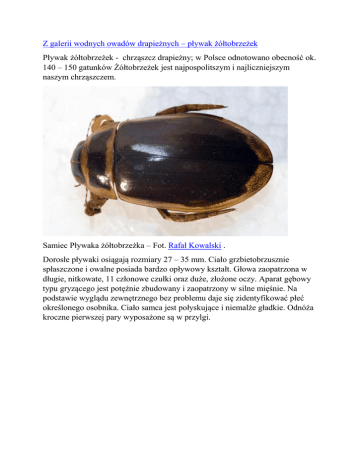 Z galerii wodnych owadów drapieżnych – pływak żółtobrzeżek