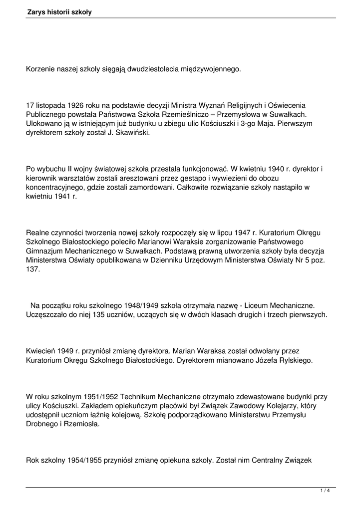Zarys historii szkoły - Zespół Szkół nr 6 w Suwałkach