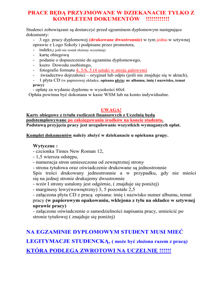 Dokumenty wymagane do obrony - Wyższa Szkoła Menedżerska w