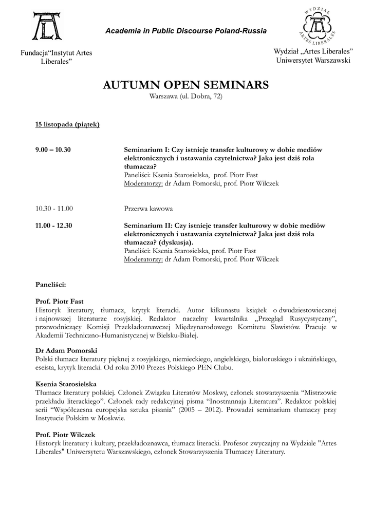 Piątek, 7 grudnia 9.00-10.00 Otwarcie