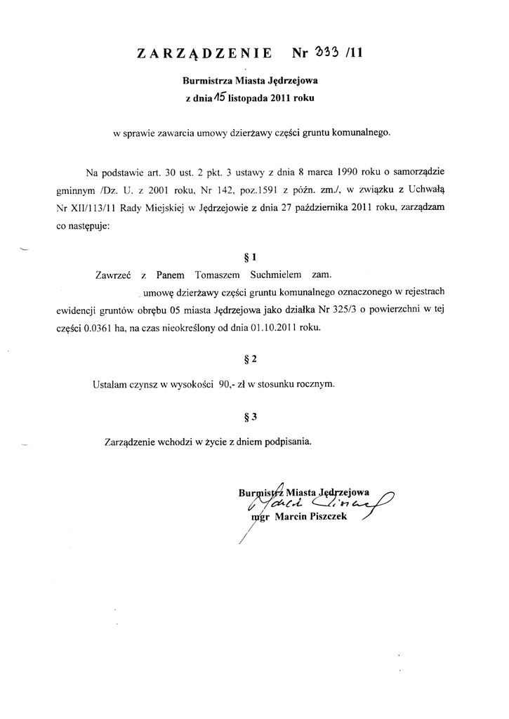 Zarz4dzeniewchodzi w Zycie z dniem podpisania.