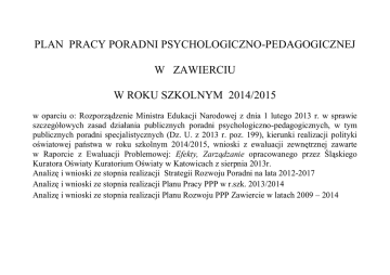 Plan pracy Poradni Psychologiczno