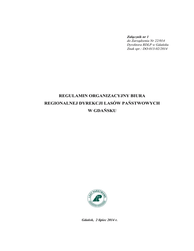 Załącznik nr 1 do Zarządzenia nr 22/2014 Dyrektora RDLP w