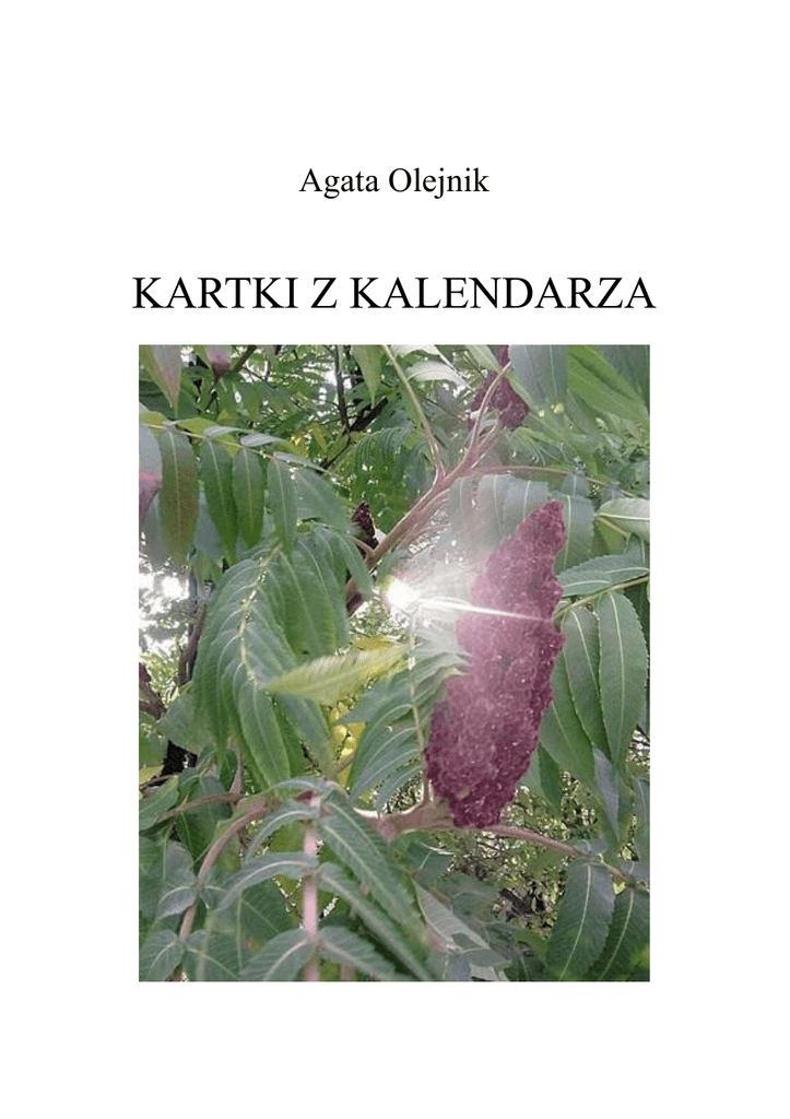 Agata Olejnik KARTKI Z KALENDARZA Agata Olejnik KARTKI Z KALENDARZA PORANEK W KOLORZE TĘCZY Obudziłam się dziś szczęśliwa tak zwyczajnie i bez przyczyny. Słońce pięknie rozświetla niebo. Nie ma żadnych jeśli i gdyby. Gdzieś przepadły troski i smutki, uśmiech błądzi po mojej twarzy. Chcę podzielić się nim z wszystkimi. Coś miłego wciąż mi się marzy. Zwykłe szare, codzienne sprawy mają dzisiaj kolory tęczy. Wszystko cieszy mnie dziś i bawi. Nic nie smuci, złości i nęci. Nie wiem co jest tego przyczyną. Jakieś czary czy twoje oczy? Ciągle jeszcze widzę ten uśmiech. Chyba troszkę mnie zauroczył. 12.07.2010 1 MARIONETKA Niepotrzebna marionetka w kąt rzucana. Zapomniana, zakurzona, lecz wciąż czeka aż odnajdziesz ją na nowo i pokochasz. Odczarujesz, zmienisz znów w człowieka. Kiedyś była atrakcyjna i wspaniała. Pełna wiary i ufności szła przed siebie aż któregoś dnia zupełnie niespodzianie na jej drodze los ustawił ciebie. Wielka miłość, euforia, rozmarzenie. Być przy tobie, z tobą i dla ciebie. Wszystko inne nagle się nie liczy. Zagubiła sama siebie w tej słodyczy. Porzuciła swych przyjaciół i marzenia. Był zaborczy, coraz bardziej ją osaczał. Swą zazdrością niszczył miłość, zaufanie. Coraz później, coraz zadziej do niej wracał. Dnia któregoś odszedł. Tak bez słowa. Jej świat runął, spłynął smutku łzami. Niczym bankrut z czekiem bez pokrycia znów musiała zmierzyć się z faktami. Trochę trwało nim się otrząsnęła. Niczym blizna strach pozostał przed zbliżeniem. Nie umiała już zaufać. No, bo komu? Serce drżało przed ufnością i marzeniem. Niepotrzebna marionetka w kąt rzucona z lękiem patrzy na mijanych ludzi. Nie chce znowu być zdradzona, porzucona. Może jednak, może kiedyś.. Wciąż się łudzi. 23.05.2010 NA MARGINESIE Niczego nie chcę, nie mam marzeń. Sama przed sobą wciąż udaję. Zamknięta w swoim własnym świecie o którym przecież nic nie wiecie. Ktoś mi powiedział: jesteś głupia. Szczerość od dawna się nie liczy. Bądź twarda, wykorzystuj innych. Kule się w sobie. Me” ja” krzyczy. Chyba nie umie, nie potrafię, nie chcę bezwzględnie iść przez życie. Być może wiele na tym tracę. Tkwię więc bezradnie w swoim bycie. Przechodzisz obok, nie dostrzegasz mnie w roześmianym , barwnym tłumie. Założyć maskę i udawać? Wolę być sobą. Nie, dziękuję. 01.06.2010 JAK LIŚĆ Jak liść niesiony wiatrem po jeziorze płynę przez życie. Nie wiem w która stronę znów los mnie rzuci, czy odnajdę ciebie lecz ciągle czekam, nadal w miłość wierzę. 22.05.2010 3 KLATKA Jak ptak zamknięty w małej klatce walczę o wolność i swobodę. Chce mieć marzenia, cele, plany, nieprzymuszoną życia wolę Bez masek, kłamstwa, udawania chcę żyć, uśmiechać się do ludzi. Wierzyć w ich przyjaźń, dobre chęci nie tylko w znoju wciąż się trudzić. Poznać czym miłość jest prawdziwa, odkrywać co dzień świat od nowa. Wierzyć ze kiedy słyszę kocham to nie są tylko puste słowa. A kiedy życie już przeminie spojrzeć za siebie i powiedzieć że nie straciłam tego czasu który dostałam tu od Ciebie. 04.02.2009 4 Obłęd. Świat, gwar, życie. Tam za oknem ludzie. Tutaj cisza, spokój, samotność.. Czy lubię? Takie wyszło... Są dwie strony lustra. Tamta gwarna i wesoła i ta na którą zepchnął mnie los. Kiedyś waliłam dłońmi w ten mur, krzyczałam „pomocy” by ktoś mnie uratował lecz słowa grzęzły w tafli zobojętnienia. Ludzie patrzyli na mnie lecz widzieli tylko siebie. Z czasem nauczyłam się żyć w moim nowym świecie. Już nie szarpię się i nie krzyczę. Z marzeń i tęsknot zbudowałam swój dom, powoli zaludniam go złudzeniami. Tylko czasem spływa jedna samotna łza. Mogę sobie na nią pozwolić. Dla ciebie i tak jestem niewidzialna. 5 KONIEC Nasz czas minął. Bezradnie patrzę jak odchodzisz. Nie potrafię cię zatrzymać. Wyciągam dłoń lecz jej nie widzisz. Łzy rozmazują twój obraz. To już koniec? Jak mam dalej żyć? Wracam do domu, jest tak cicho. Poduszka jeszcze pachnie twym zapachem. Wszystko przypomina chwile spędzone razem, Łzy znaczą ślady na mej twarzy. Dla ciebie to już i tak nie ma znaczenia. Serce pękło na milion kawałków. W każdym z nich zamknięte jest wspomnienie. To tak boli. Świadomość że „my” to już przeszłość. Na palcu nadal błyszczy ślad twoich obietnic. Jak wymazać mam cię z pamięci? Może sen przyniesie ukojenie. 17.06.2010 6 JESTEŚ LEKIEM NA CAŁE ZŁO Uśmiech błądzi po mojej twarzy, dziwne myśli przychodzą do głowy. O czymś marzę, coś sobie nucę. Świat jest piękny i kolorowy. Jeszcze wczoraj było ponuro, czarne chmury zasnuły niebo. Dziś jest jasno, ciepło, słonecznie. Czy to czary? Jakie? Dlaczego? Błękit nieba w twoim spojrzeniu, uśmiech który rozgonił chmury. To fizycznie jest niemożliwe by przy tobie ktoś był ponury. 20.06.2010 7 PUZZLE Nie pasuję do tej całej układanki, takie puzzle które zawsze się wyrzuca. Każdy stara się je zdobyć, wykorzystać, ale zaraz bez emocji precz porzuca. Tyle było układanek i nadziei. I ufności że tym razem coś się zmieni. Że tym razem będę wreszcie pasowała. Znowu słyszę: Cóż, nic z tego, trudna rada. Zawsze z boku, niepotrzebna, do niczego. Zapomniana i samotna. I co z tego? Bezlitośnie czas odmierza chwile. Egzystuję, jestem lecz czy żyję? 20.06.2010 KARUZELA Na karuzeli życia siadam, zamykam oczy i mnie nie ma. Wszystko gdzieś znika i odpływa. Stanowię łącznik niebo – ziemia. Kręcę się w koło, świat wiruje. Chwilą obrazy los maluje. Do euforii jedna chwila.. Stop! Karuzelę ktoś zatrzymał. 28.06.2010 8 INNI Obojętnie przechodzisz ulicą. Nie dostrzegasz tych, którzy krzyczą. Zagubionych, samotnych ludzi. Dla nich przecież nie warto się trudzić. Oni żebrzą o trochę uwagi. Choć na chwile oderwać się z tłumu... Poczuć bliskość drugie