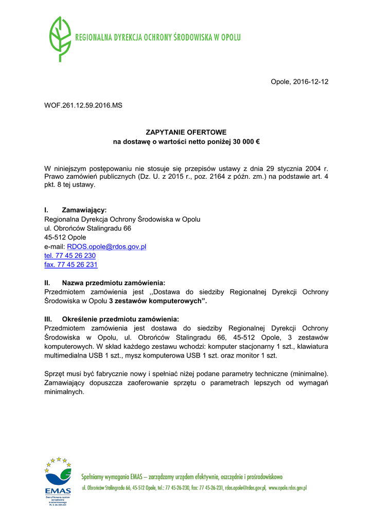 Opole, 2016-12-12 WOF.261.12.59.2016.MS ZAPYTANIE