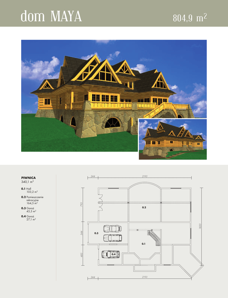 dom MAYA 804,9 m2 2193 244 PIWNICA 340,1 m2 0.2 Pomieszczenie rekracyjne 164,5 m2 793 0.1 Hall 103,2 m2 0.2 0.3 Garaż 45,3 m2 544 1820 0.4 Garaż 27,1 m2 0.3 483 0.1 0.4 244 2193 Tel. (+48 18) 547 30 19 244 PARTER 262,6 m 2 www.goralskiedomy.pl 183 740 544 544 183 0.1 Hall 64,8 m2 0.2 WC 4,4 m2 0.4 Garderoba 6,3 m2 457 0.3 Garderoba 7,8 m2 0.5 Łazienka 29,0 m2 0.7 544 0.6 Sypialnia 61,4 m2 0.6 0.8 0.7 Pokój dzienny 46,5 m2 0.1 483 0.8 Jadalnia 19,8 m2 0.5 0.9 0.9 Kuchnia 22,6 m2 0.3 0.2 0.4 Jacuzzi 3 41 244 PODDASZE 202,2 m2 527 833 244 183 544 740 541 544 183 0.1 Hall 65,1 m2 183 0.5 0.6 0.5 Sypialnia 22,9 m2 0.4 544 0.6 Sypialnia 22,7 m2 0.7 0.8 0.3 0.7 Łazienka 5,7 m2 Antresola 483 0.8 Sypialnia 37,0 m2 1008 0.4 Łazienka 8,4 m2 274 0.3 Łazienka 9,1 m2 183 0.2 Sypialnia 19,9 m2 0.2 0.9 0.9 Łazienka 11,4 m2 142 0.1 3 41 244 833 527 541