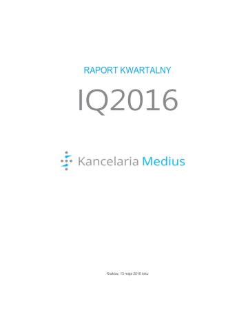 RAPORT KWARTALNY IQ2016 Kraków, 13 maja 2016 roku RAPORT OKRESOWY ZA I KWARTAŁ 2016 ROKU Szanowni Państwo, Przekazuję w Państwa ręce raport za I kwartał 2016 roku z działalności naszej Spółki. Pierwszy kwartał 2016 roku stanowił okres wytężonych działań operacyjnych oraz strategicznych, które w mojej opinii, przyczyniły się do rozwoju spółki, umocnienia pozycji na obsługiwanym rynku oraz ekspansji rynku hiszpańskiego. Miniony kwartał zamykamy z satysfakcją prezentując Państwu wyniki finansowe spółki. Wyniki finansowe spółki I kwartału 2016 roku wskazują na dużą dynamikę wzrostu przychodów i zysku. Przychody netto ze sprzedaży w I kwartale kształtują się na poziomie 4,6 mln zł, co stanowi wzrost o 190% r/r, natomiast zysk netto wzrósł o 61% i ukształtował się na poziomie 1,04 mln zł. Wyniki, które prezentujemy Państwu w I kwartale są potwierdzeniem prawidłowo przyjętej strategii inwestycyjnej oraz efektywnym zarządzaniem portfelem wierzytelności. W I kwartale spółka konsekwentnie realizowała strategię inwestycyjną na rynku lokalnym oraz zagranicznym poprzez zwiększenie własnych portfeli wierzytelności. Kancelaria Medius S.A. w I kwartale nabyła wierzytelności o wartości 3,7 mln zł. Natomiast Medius Collection S.L nabył portfel wierzytelności o łącznej wartości 7,6 mln EUR na rynku hiszpańskim. Dostęp do kapitału jest niezwykle ważny w zakresie finansowania nowych inwestycji, które stanowią podstawę generowania przychodów i zysków przedsiębiorstwa. W omawianym okresie zawarliśmy umowę inwestycyjną z Trigon TFI S.A., Venture FIZ oraz z sukcesem zakończyliśmy największą emisję obligacji pozyskując 7 mln zł. Niniejsze działania pozwalają na umacnianie pozytywnego wizerunku spółki w oczach Inwestorów oraz rynku. Kancelaria Medius S.A. to nie tylko zaufany partner biznesowy ale również stabilna inwestycja. Pełen entuzjazmu patrzę w przyszłość ze świadomością nowych wyzwań. Serdecznie zapraszam do lektury niniejszego raportu. Z uszanowaniem, Michał Imiołek Prezes Zarządu 2 RAPORT OKRESOWY ZA I KWARTAŁ 2016 ROKU Spis treści 1. Podstawowe informacje o Emitencie ............................................................................................................................................................... 4 1.1. Informacje ogólne Kancelaria Medius S.A. ............................................................................................................................................ 4 1.2. Informacje ogólne Medius Collection S.L. .............................................................................................................................................. 4 2. Wybrane dane finansowe za IQ 2016 roku ...................................................................................................................................................... 6 3. Informacje o zasadach przyjętych przy sporządzeniu raportu ......................................................................................................................... 6 4. Wybrane dane finansowe ................................................................................................................................................................................ 7 5. 4.1. Bilans ..................................................................................................................................................................................................... 7 4.2. Rachunek zysków i strat ........................................................................................................................................................................ 9 4.3. Zestawienie zmian w kapitałach ........................................................................................................................................................... 10 4.4. Cash flow ............................................................................................................................................................................................. 11 Opis istotnych wydarzeń i dokonań w IQ2016 ............................................................................................................................................... 12 5.1. Działalność w Polsce ........................................................................................................................................................................... 12 5.2. Działalność w Hiszpanii ........................................................................................................................................................................ 12 3 RAPORT OKRESOWY ZA I KWARTAŁ 2016 ROKU 1. Podstawowe informacje o Emitencie 1.1. Informacje ogólne Kancelaria Medius S.A. Firma Kancelaria Medius S.A. Forma prawna Spółka akcyjna Kraj siedziby Polska Adres ul. Babińskiego 69, 30-393 Kraków Telefon +48 12 265 12 76 Fax +48 12 311 03 06 Internet www.kancelariamedius.pl E-mail [email protected] [email protected] [email protected] Kapitał zakładowy 4 281 002,00 zł, opłacony w całości KRS Sąd Rejonowy dla Krakowa-Śródmieście w Krakowie Wydział XI Gospodarczy Krajowego Rejestru Sądowego pod nr 0000397680 REGON 121850740 NIP 6793070026 Zarząd Michał Imiołek – Prezes Zarządu Rada Nadzorcza Andrzej Zając – Przewodniczący RN Maria Imiołek – Członek RN Artur Bieńkowski – Członek RN Adam Góralczyk – Członek RN Marcin Rymaszewski – Członek RN Akcjonariat Akcjonariusz 100% 8 562 004 akcji Liczba akcji Udział w kapitale zakładowym mm-investments Sp. z o.o. mm-investments Sp. z o.o. 3 951 317 46,15% Adam Łanoszka Adam Łanoszka 1 733 269 20,24% Aleksander Szalecki Aleksander Szalecki 698 352 8,16% MIDVEN S.A. MIDVEN S.A. 609 000 7,11% 29 662 0,35% Pozostali 1 540 404 17,99% Razem 8 562 004 100% Kancelaria Medius S.A. Pozostali Akcjonariusze Kanc