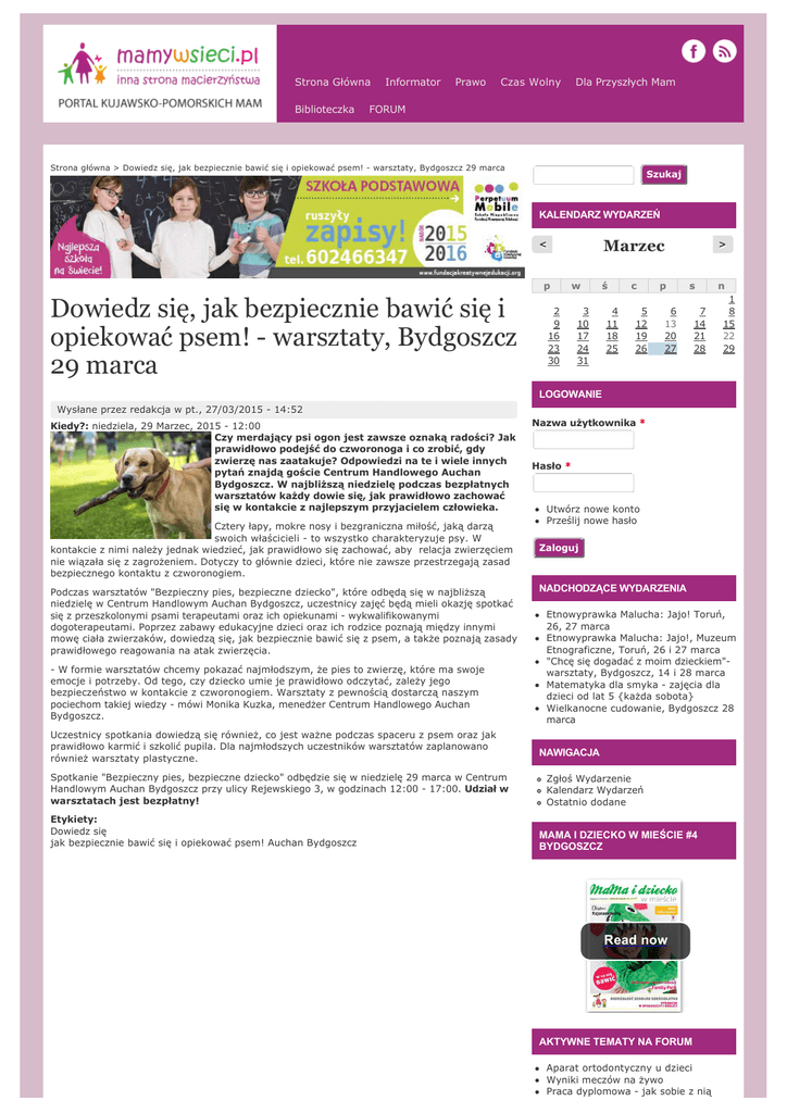 Strona główna > Dowiedz się, jak bezpiecznie bawić się i opiekować psem! - warsztaty, Bydgoszcz 29 marca