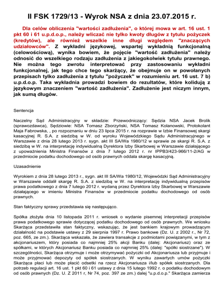 II FSK 1729/13 - Wyrok NSA z dnia 23.07.2015 r.
