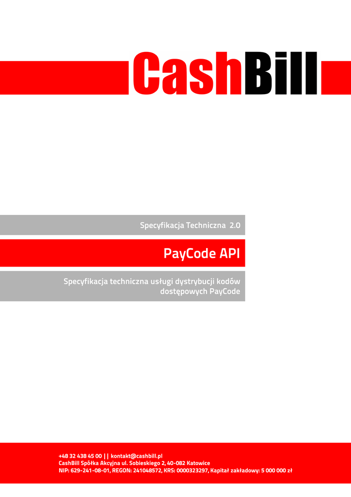 Specyfikacja Techniczna 2.0 PayCode API Specyfikacja techniczna usługi dystrybucji kodów dostępowych PayCode +48 32 438 45 00 || [email protected] CashBill Spółka Akcyjna ul. Sobieskiego 2, 40-082 Katowice NIP: 629-241-08-01, REGON: 241048572, KRS: 0000323297, Kapitał zakładowy: 5 000 000 zł PayCode API Spis treści 1 Czym jest usługa PayCode?........................................................................................................... 3 2 Uruchomienie serwisu PayCode.................................................................................................... 4 3 Obsługa serwisu PayCode.............................................................................................................. 4 3.1 Przebieg transakcji zakupu kodu............................................................................................. 4 3.2 Bezpośrednie generowanie URL.............................................................................................. 5 3.3 Powiadomienie o autoryzacji.................................................................................................... 7 4 SDK dla PHP5.................................................................................................................................. 8 5 Historia zmian................................................................................................................................. 8 2 PayCode API 1 Czym jest usługa PayCode? Serwis Paycode to usługa polegająca na dystrybucji kodów dostępowych do części płatnych serwisów www. Kody udostępniane są klientom zarówno poprzez Płatności Cashbill jak i z wykorzystaniem usługi SMS Premium Rate. Podstawową różnicą pomiędzy usługą Serwis Paycode, a Punktem Płatności (Kody) jest podmiot dostarczający kody (sprzedawca) oraz sposób rozliczania z właścicielem serwisu. W przypadku usługi „Serwisy Paycode” sprzedawcą kodów dostępowych jest firma Cashbill S.A., a właściciel serwisu www otrzymuje prowizję za wykorzystanie kodu w swoim serwisie. Taki model rozliczania zwalnia właściciela serwisu z konieczności obsługi klienta indywidualnego, wystawiania faktur i paragonów. Wystarczy jedna faktura zbiorcza miesięcznie, przygotowywana przez system CashBill. Strona internetowa, korzystający z usługa „Serwis Paycode”, na życzenie właściciela, może uczestniczyć w programie partnerskim, co oznacza, iż część prowizji za wykorzystanie kodu dostępowego przekazywana jest do użytkownika systemu Cashbill, który efektywnie promuje dany serwis www. PayCode Punkt Płatności (kody) Jedna zbiorcza faktura miesięcznie Konieczność wystawiania indywidualnych faktur, paragonów klientom serwisu Płatności rozliczane jako prowizje Płatności przekazywane bezpośrednio akceptantowi Obsługa podatkowa przez system CashBill Podatki w gestii akceptanta Wypłata środków w cyklu miesięcznym Wypłata środków na życzenie Wbudowana obsługa kodów SMS Kody SMS dostępne jako niezależna usługa Wbudowana obsługa Programu Partnerskiego Program Partnerski dostępny jako niezależna usługa Tabela 1: Podstawowe różnice między serwisem PayCode a Punktem Płatności (kody) 2 Uruchomienie serwisu PayCode Uruchomienie serwisu PayCode 3 PayCode API Pierwszym etapem wdrożenia PayCode na serwisie internetowym jest uruchomienie usługi w panelu CashBill. Po wypełnieniu formularza uruchomienia nowej usługi PayCode system CashBill przyznaje klucz tajny zabezpieczający komunikację między serwisem a systemem CashBill. Do wdrożenia usługi PayCode konieczne jest odczytanie z panelu administracyjnego CashBill następujących parametrów: Parametr Znaczenie sysid Unikalny identyfikator serwisu privkey Klucz tajny serwisu Tabela 2: Parametry wymagane do wdrożenia serwisu PayCode 3 Obsługa serwisu PayCode Inicjalizacja sprzedaży kodu PayCode polega na przygotowaniu specjalnego adresu URL i przekazaniu go do przeglądarki klienta. Spreparowany adres zawiera wszystkie informacje konieczne do przeprowadzenia transakcji. Po zakończeniu transakcji serwis informowany jest poprzez notyfikację HTTP, a klient zostaje przekierowany do wybranej przez serwis strony. Kod dostępowy generowany jest w serwisie, w trakcie budowania adresu URL transakcji. Klient jest informowany o treści kodu jeszcze przed zakupem, jednak kod jest aktywowany dopiero po dokonaniu płatności. 3.1 Przebieg transakcji zakupu kodu 1. Serwis generuje nieaktywny kod dostępowy KOD. 2. Serwis generuje unikalny URL transakcji i przekazuje go klientowi. 3. Klient dokonuje wyboru kanału płatności i finalizuje zakup. 4. System CashBill informuje serwis o dokonaniu płatności poprzez kanał serwerowy notifyUrl 5. Serwis aktywuje kod i przypisuje mu ważność. 6. System CashBill przekierowuje przeglądarkę klienta na adres powrotu redirectUrl Obsługa serwisu PayCode 4 PayCode API 3.2 Bezpośrednie generowanie URL Bezpośrednie rozpoczęcie transakcji wymaga wygenerowania adresu URL inicjującego transakcję i przekazania go do przeglądarki klienta. Usługa PayCode obsługiwana jest pod adresem URL: https://ppp.cashbill.pl/pay/get/ Oczekiwane parametry to: parametr znaczenie sysid Identyfikator serwisu ref Kod referencyjny programu partnerskiego. Opcjonalny w przypadku serwisów nie uczestniczących w Programie Partnerskim CashBill. encoding Format kodowania znaków pozostałych parametrów, w formacie zgodnym z biblioteką ICONV amount Cena kodu. Separatorem dziesiętnym jest kropka („.”) currency Waluta, zgodna z normą ISO 4217 notifyUrl Adres URL, na który zostanie przekazane powiadomienie o pozytywnym zakończeniu transakcji. notifyMode Tryb wysyłania powiadomienia redirectUrl Adres, na który ma zostać przekierowany klient po zakończeniu transakcji title Tytuł transakcji, który powinien zawierać treść sprzedawanego kodu. sign Sygnatura operacji Tabela 3: Parametry GET przekazywane do usługi PayCode Obsługa serwisu Pa