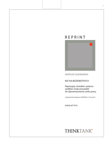 _1 X EX PX RX IXN T R MATEUSZ GUZIKOWSKI: BAT NA BEZROBOTNYCH Represyjny charakter systemu zasiłków może prowadzić do zdynamizowania rynku pracy. Artykuł pochodzi z Magazynu THINKTANK nr 19, zima 2013 WWW.MTTP.PL TA K M Y Ś L Ę _ Mateusz Guzikowski Bat na bezrobotnych Polski system zasiłków w umiarkowanym stopniu karze bezrobotnych za zachowania oportunistyczne, niespecjalnie też premiuje ich aktywność w poszukiwaniu pracy. To utrwala wysokie bezrobocie. Czas pomyśleć o bardziej represyjnych, a zarazem motywujących rozwiązaniach. Celem funkcjonowania zasiłków jest czasowe zapewnienie osobom pozostającym bez pracy środków do życia do chwili znalezienia nowego zatrudnienia. Ale sama konstrukcja systemu zasiłków może stymulować lub destymulować bezrobotnych do aktywnego poszukiwania pracy. Dlatego proporcja między narzędziami motywującymi a demotywatorami w istotny sposób wpływa na faktyczną stopę bezrobocia oraz przeciętną długość okresu pozostawania bez pracy. To od niej zależy, czy bezrobotnym opłaca się być, czy też nie. Stosowany w Polsce system zasiłków sprawia, że osobom trwale bezrobotnym taka sytuacja często się opłaca. Tymczasem przykłady państw regionu, w których zostały wprowadzone ostre kary za opieszałość w poszukiwaniu pracy, pokazują, że represyjny charakter systemu może prowadzić do zdynamizowania rynku pracy. Polski system zasiłków powinien zostać zrekonstruowany właśnie w takim kierunku. Zła hojność systemu Liczba beneficjentów pomocy zależy od stopnia dostępności świadczeń oraz ich wysokości. Im zasiłki są wyższe, tym wyższa jest tzw. płaca progowa, czyli subiektywna wycena własnych kwalifikacji (wysokość wynagrodzenia, poniżej której we własnym odczuciu nie opłaca się pracować). Jeśli rośnie płaca progowa, bezrobotni są bardziej wybredni w poszukiwaniu odpowiadającej im pracy, co oznacza, że wydłużeniu ulega przeciętny okres bezrobocia. Taka hojność systemu negatywnie wpływa też na osoby zatrudnione. Sfinansowanie wyższych zasiłków wymaga nakładania nowych bądź utrzymania wyższych podatków, a także wzmacnia żądania płacowe osób pracujących na etatach. Obniżenie klina podatkowego bez ograniczenia hojności systemu świadczeń jest tylko częściowo skuteczne, ponieważ gdyby zreformować oba elementy, popyt na pracę wzrósłby w większym stopniu. Dużo bardziej dezaktywizującym czynnikiem jest jednak przewidywany ustawowo czas pobierania zasiłku. Nawet niski zasiłek, ale wypłacany długo, działa demotywująco, bezrobotni bowiem na ogół zaczynają poszukiwać pracy tuż przed końcem okresu wypłat. Im jest on dłuższy, tym szanse zatrudnienia – również ze względu na erozję posiadanych przez nich, a nieużywanych kwalifikacji – niższe. Trzeba zaostrzyć kryteria Wysokość czy też długość okresu wypłaty zasiłku nie są jednak wyłączną przyczyną utrzymywania się wysokiego bezrobocia w krajach OECD i UE. Kluczowa kwestia to nieodpowiednia konstrukcja systemu zasiłków, który nie nakłada na bezrobotnego odpowiednio restrykcyjnych wymagań co do poszukiwania pracy czy też kar za opieszałość w tym zakresie. Nie na wszystkich krajowych rynkach pracy jest jednak tak łagodnie – najciekawsze i najostrzejsze zarazem kary są stosowane w Rumunii, Słowenii i na Słowacji, gdzie już odmowa przyjęcia pierwszej oferty skutkuje zawieszeniem wypłaty zasiłku i skreśleniem z listy bezrobotnych. Wśród krajów OECD Polska stawia bezrobotnym najmniejsze wymagania dotyczące akceptacji przedstawianych ofert pracy, aktywnego jej poszukiwania lub terminowego stawiania się w urzędach, by potwierdzać gotowość do jej podjęcia. W zakresie polityki 2_3 Fot.: ARCHIWUM AUTORA państ wo rynku pracy mamy zatem spore możliwości usprawnienia narzędzi monitorujących wysiłek wkładany przez bezrobotnych w poprawę własnego statusu. Rekomendacje dla Polski Polska powinna w sposób zdecydowany m.in. zwiększyć wymagania związane z raportowaniem wysiłków wkładanych w poszukiwanie i znalezienie pracy – im dłużej bezrobotny pozostaje bez pracy, tym częściej powinien składać raporty w urzędzie pracy (obecnie nie ma takiego obowiązku). Bezrobotni powinni mieć także nakaz udziału w programach z obszaru aktywnej polityki rynku pracy (ALMP) – zatrudnieniu subsydiowanym, robotach publicznych, szkoleniach zawodowych, treningach aktywizacyjnych czy doradztwie zawodowym. Udział w każdej z powyższych form aktywizacji nie powinien zwalniać ich z obowiązku aktywnego poszukiwania pracy. Czas zaostrzyć także – wzorem Rumunii czy Słowenii – kryteria uprawniające do odrzucenia oferty pracy. Odmowa powinna być usprawiedliwiona tylko przez przyczyny zdrowotne, a nie np. geograficzne (tj. odległość miejsca pracy od Mateusz Guzikowski: ekonomista, doktorant warszawskiej SGH w Katedrze Teorii Systemu Rynkowego, specjalista ds. polityki rynku pracy i systemu emerytalnego, autor analiz, dyrektor programu Więcej zatrudnienia w Forum Obywatelskiego Rozwoju, m.in. Zbrodnia i kara – jak uczynić zasiłki narzędziem aktywizującym bezrobotnych. miejsca zamieszkania), choć warto pomyśleć o wprowadzeniu subsydiów relokacyjnych w przypadku koniecznej przeprowadzki lub częściowej refundacji kosztów dalszych dojazdów. I najważniejsze – konieczne jest zaostrzenie kar za odrzucenie proponowanej oferty pracy, z cofnięciem prawa do pobierania zasiłku włącznie już przy pierwszym takim przypadku. Reformie systemu zasiłków powinny towarzyszyć zmiany uelastyczniające rynek pracy oraz zwiększające liczbę indywidualnych doradców zawodowych, z których usług mogą korzystać osoby pozostające bez pracy. Dzięki temu możliwe będzie ograniczenie skali wydatków na zasiłki dla bezrobotnych i zmniejszenie deficytu sektora finansów publicznych w podsystemie ubezpieczeń społecznych. Pytanie tylko, czy uda się doprow