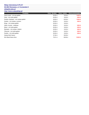 Sklep internetowy E-PLAY 02-296 Warszawa, ul. Kurzawska 6 sklep