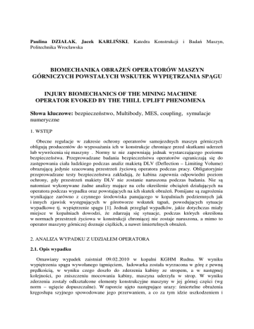biomechanika obrażeń operatorów maszyn górniczych powstałych
